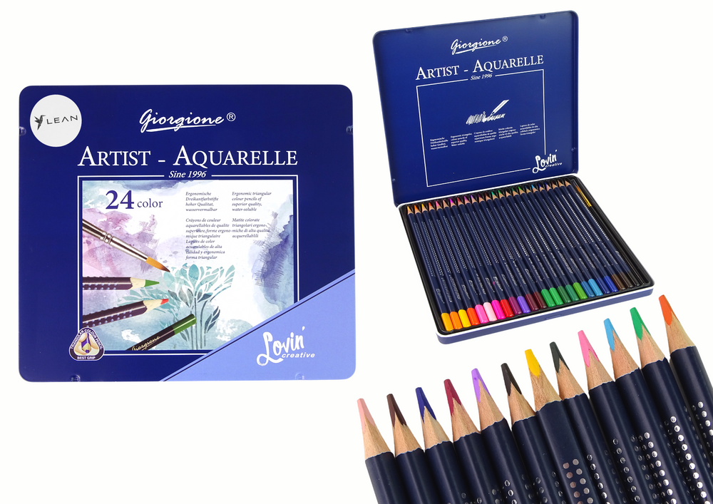 24 akvarelinių pieštukų rinkinys elegantiškoje tamsiai mėlynoje metalinėje dėžutėje - puiki priemonė tapybos ir kūrybiškumo mėgėjams. Kiekvienas pieštukas yra 17 cm ilgio ir suteikia intensyvių spalvų, kurios atgaivins jūsų kūrinius.