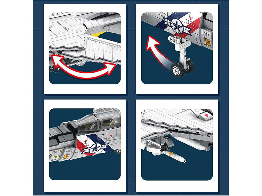 Konstruktorius F-14 Tomcat - tai amerikiečių viršgarsinis naikintuvas su dviem varikliais, dviem sėdynėmis, dviem uodegomis, lėktuvnešiams pritaikytais sparnais su kintamu nuolydžiu, leidžiančiu skristi bet kokiomis oro sąlygomis. Blokelius lengva sujungti, todėl jie yra saugūs ir patvarūs, o papildomos dekoratyvinės detalės daro žaidimą įdomesnį. Konstruktorius suteikia daugybę idėjų kūrybiniam žaidimui ir yra smagios mažiems ir dideliems konstruktoriams.