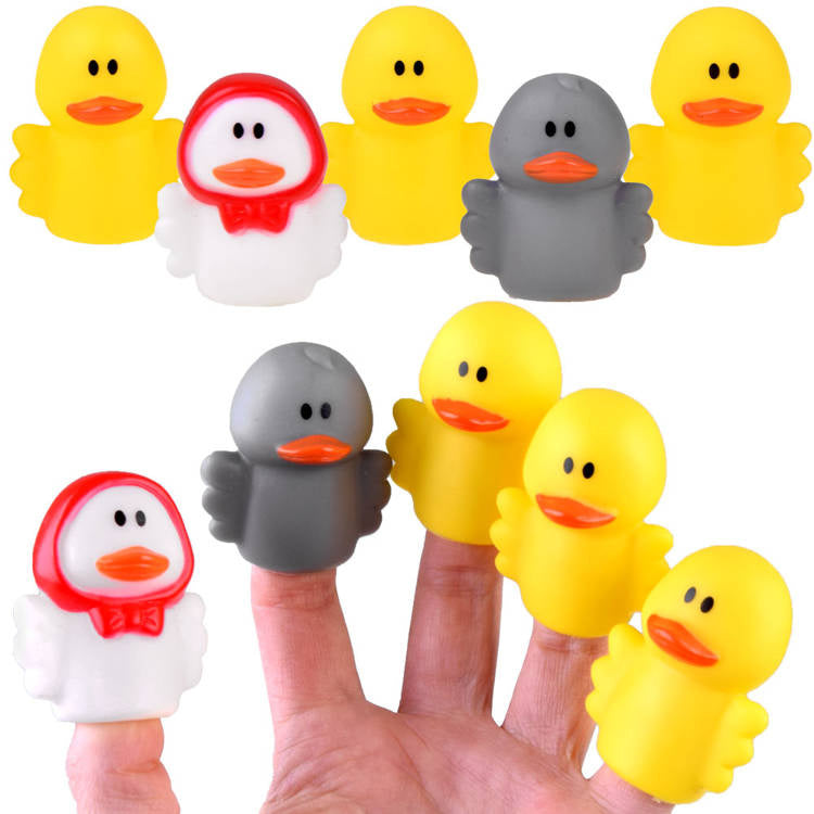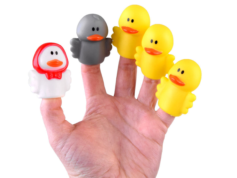Ančiukų formos antpirščiai puikiai tiks skaitant pasaką apie bjaurųjį ančiuką, lėlių dėka galėsite vaidinti pasakų scenas. Žaidimas su guminiais ančiukais puikiai tiks skaitant knygą, žaidžiant vonioje, smėlio dėžėje.