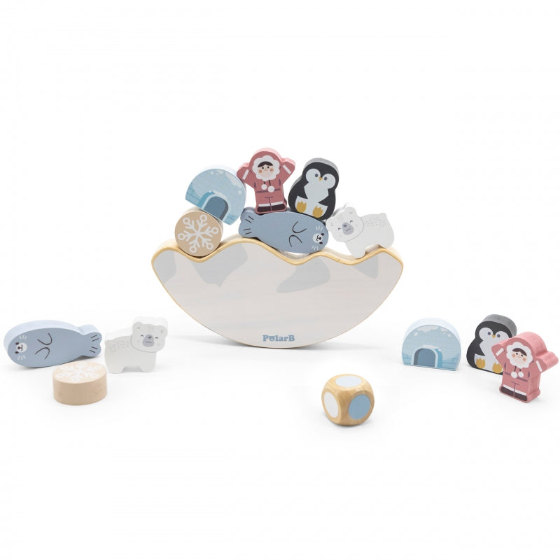 "Viga PolarB" balansavimo žaidimas "Arkties gyvūnai" yra vikrumo ir lavinamasis žaislas. Jo tikslas - lavinti mūsų vaikų motoriką. Žaidimą sudaro 12 kaladėlių, balansavimo pagrindas ir kubas. Žaidimo metu reikia suderinti kubo spalvą su kaladėlės spalva ir suderinti kaladėlę taip, kad konstrukcija išlaikytų pusiausvyrą. Tai nėra lengva, kai lopšys nuolat balansuoja.