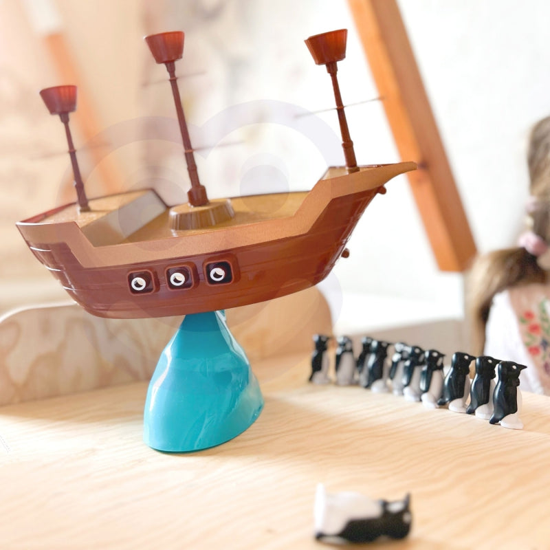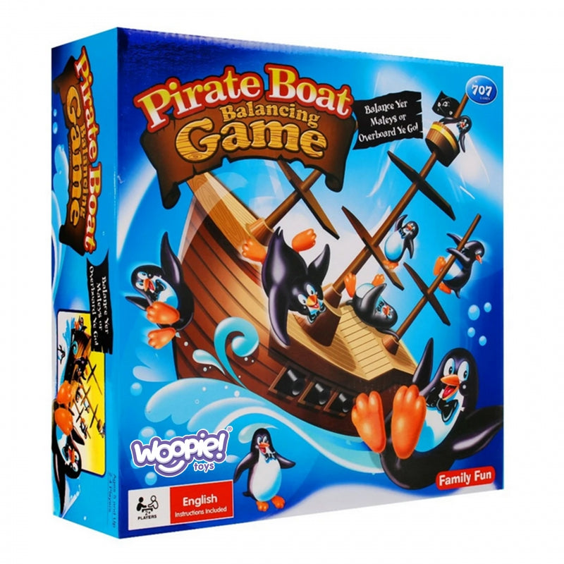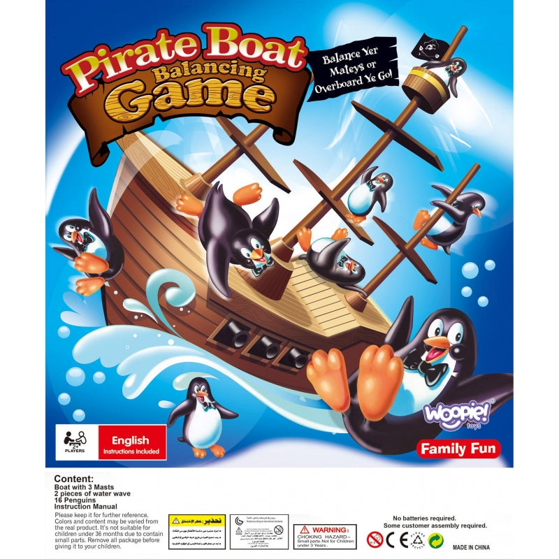 Piratų pingvinų laivas - tai "Woopie" prekės ženklo arkadinis žaidimas visai šeimai. Šiame žaidime pingvinus reikia uždėti ant balansuojančio laivo. Žaidimas labai įdomus ir jaudinantis, nes laivas nuolat balansuoja, o žaidėjo užduotis - pastatyti pingviną ant laivo taip, kad jis nenukristų į vandenį.