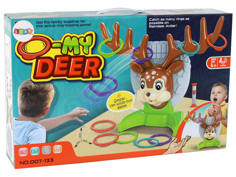 Šis žaidimas puikiai tinka visiems, ieškantiems azarto, juoko ir linksmybių žaidžiant kartu. Tiek vaikams, tiek suaugusiesiems mūsų žaidimas suteikia unikalų būdą išbandyti vikrumą, kantrybę ir sumanumą. Visą žaidimo rinkinį sudaro žavus elniukas ir pasirinktos spalvos lankai. Žaidimo taisyklės paprastos, bet įdomios. Žaidėjai surenka elnią, paskirsto lankus ir meta juos į elnio ragus, stengdamiesi, kad jie nenukristų.