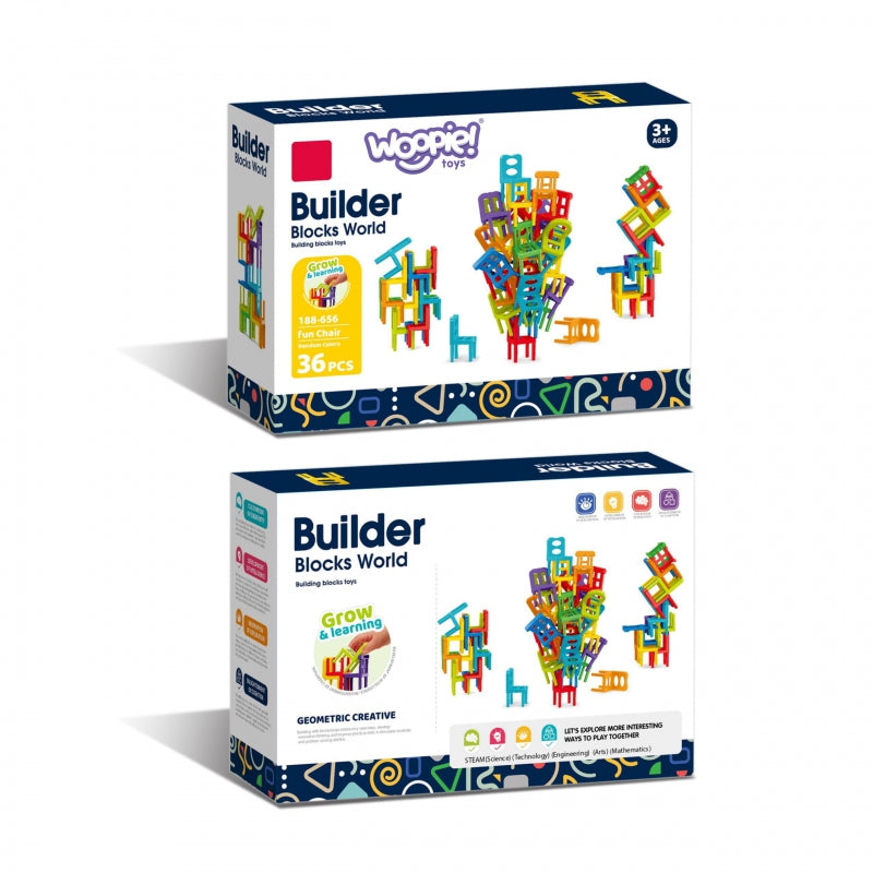 WOOPIE prekės ženklo BALANCING CHAIRS yra fantastiškas socialinis vikrumo žaidimas vienam, dviem ar daugiau žmonių, kuris įtraukia ir vaikus, ir suaugusiuosius. Žaidimai yra puikus būdas smagiai praleisti laiką kartu su šeima ir draugais. Dėl tokių žaidimų vaikai gali daugiau laiko praleisti su tėvais.