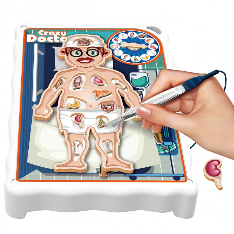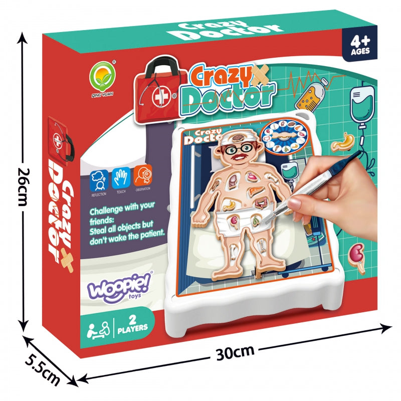 WOOPIE prekės ženklo arkadinis žaidimas "Beprotiškas daktaras", tai žaidimas kuriame atliksite gydytojo vaidmenį ir atliksite operaciją. Pacientui įdedame organus, o tada sukdami ratą sužinome, kurį organą turime pašalinti . Tai reikia daryti labai tiksliai, nes kai tik paliečiame paciento organą, jis sudreba, o tai lemia pralaimėjimą. Šis žaidimas lavina akies ir rankos koordinaciją, didina tikslumą, kantrybę ir koncentraciją.