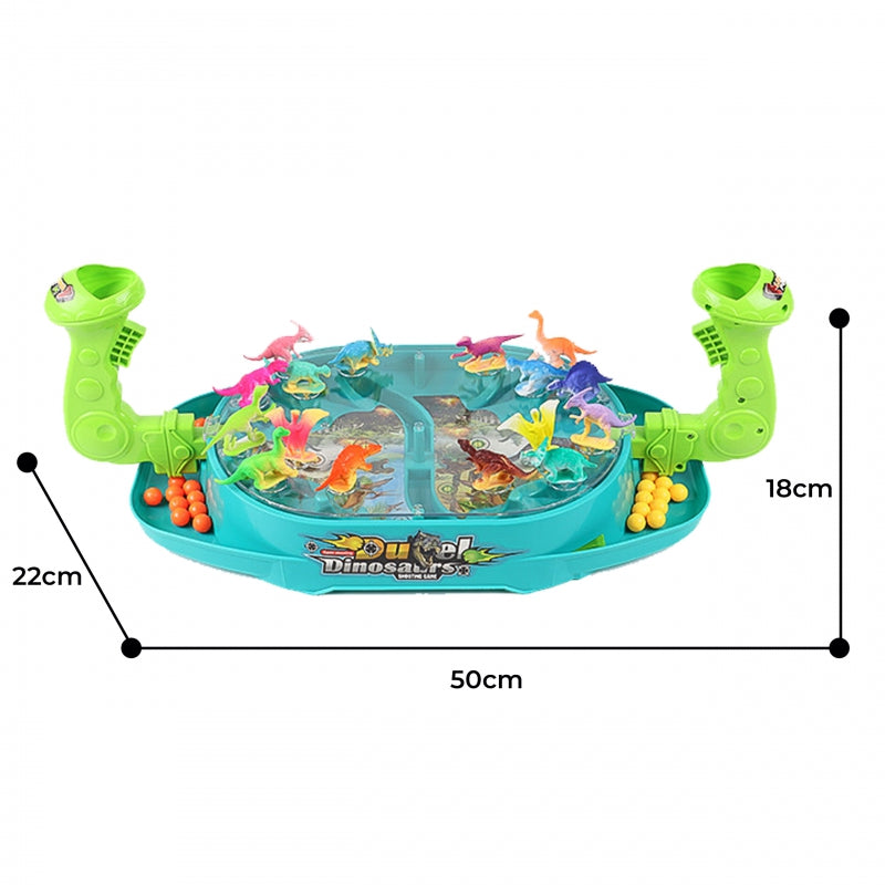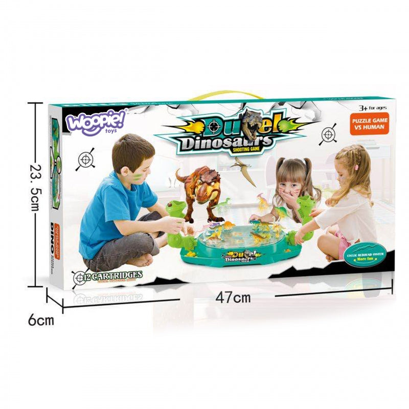 "Battle of the Dinosaurs" - tai Woopie prekės ženklo arkadinis žaidimas. Ši dviejų žaidėjų dinozaurų šaudyklė labai pagerins koordinacijos įgūdžius. Išdėliokite dinozaurus ant lentos tinkamose vietose. Įmeskite rutuliukus į rankeną ir paspauskite gaiduką, kad numuštumėte dinozaurus. Laimi tas žaidėjas, kuris greičiau rutuliukais numuša dinozaurus nuo priešininko lentos.
