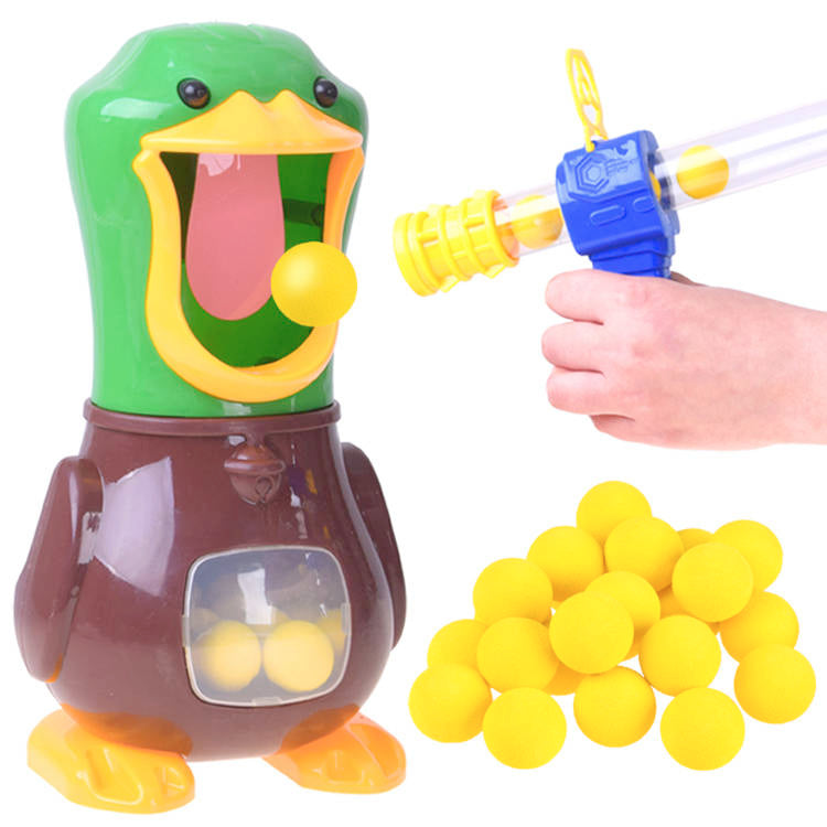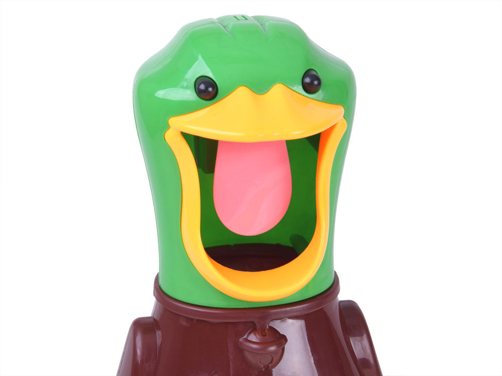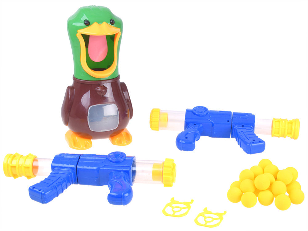 "Hit the Duck" - tai smagus arkadinis žaidimas, kuriame gali patirti jaudinantį iššūkį, kas pataikys į anties liežuvį, kas įmes kamuoliuką į vidų ir kas laimės! Pramoga visiškai saugi, iš dalyvių reikia tik susikaupti ir stengtis pataikyti į taikinį. Papildoma atrakcija - garsas (kudakavimas), kurį antis skleidžia pataikius į liežuvį. Žaisla supakuotas į kartoninę, spalvingą pakuotę, kuri puikiai tinka dovanai.