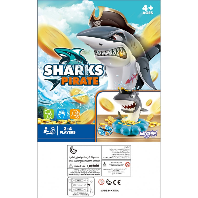 WOOPIE prekės ženklo "Pirate Shark" arkadinis žaidimas yra labai įdomus žaidimas, reikalaujantis sumanumo, refleksų ir rankų įgūdžių. Žaidimas skirtas vaikams nuo ketverių metų amžiaus. Jis moko jūsų vaiką kantrybės, gerina jo dėmesį ir kartu suteikia daug puikios pramogos. Žaidimas idealiai tinka vakarėliams ar šeimos laisvalaikiui.