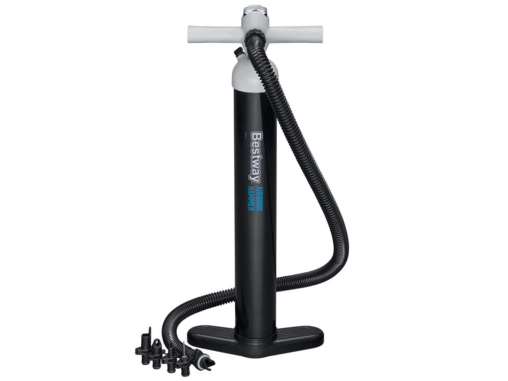 "Bestway" aukšto slėgio rankinis siurblys "Air Hammer Sport" puikiai tinka pripučiant didesnius pripučiamus daiktus, pavyzdžiui, čiužinius, pripučiamas lovas, laivus, baidarių ar SUP lentas ir kt. Dviejų krypčių pompa leis greitai pripūsti arba išleisti orą iš pripučiamų daiktų. Rinkinyje yra 5 antgaliai, kurie tinka skirtingiems vožtuvams.