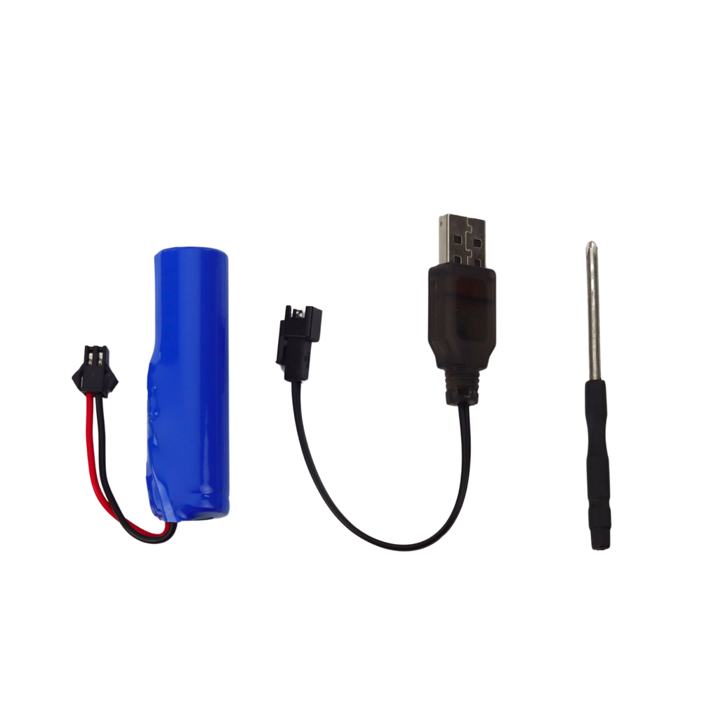- Maitinimo šaltinis: 3,7 V ličio jonų įkraunama baterija (pridedama)