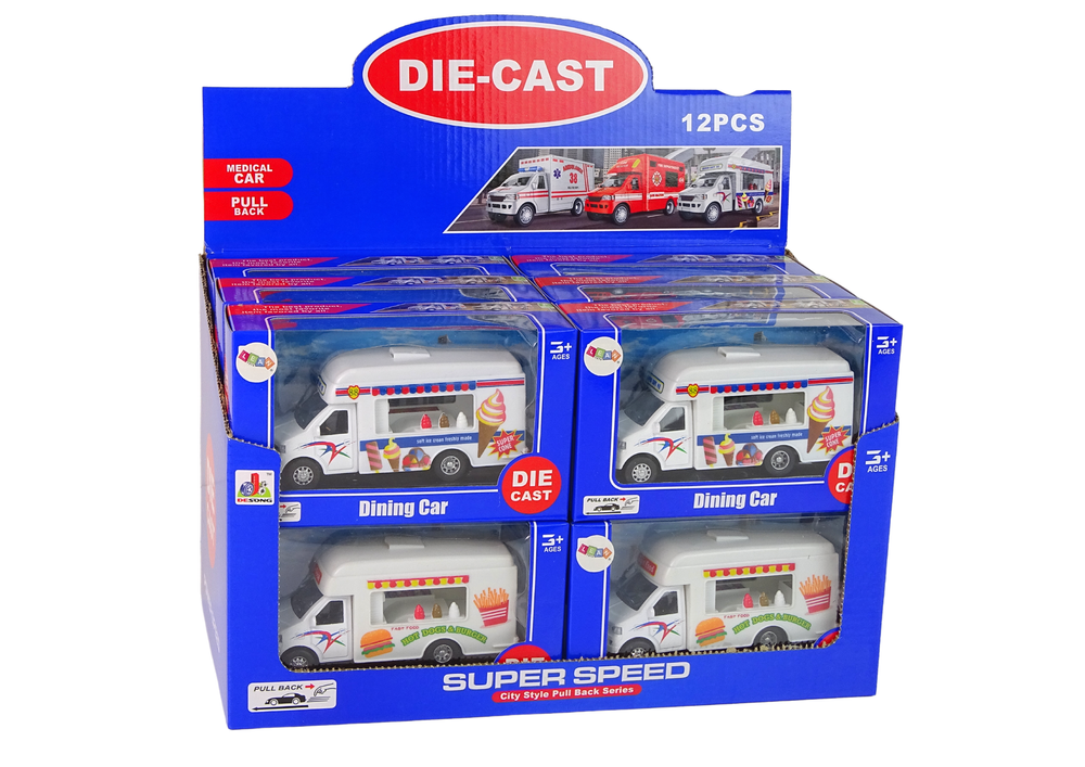 Maži automobiliai lavina vaiko vaizduotę, žaidimas skatina jų vystymąsi! Automobiliai puikiai papildo kolekciją, jie puikiai telpa į mažą ranką, todėl vaikas gali juos pasiimti visur. Rinkinį sudaro dvi furgono versijos. Vienas veikia kaip ledų salonas, kitas - kaip greitojo maisto automobilis.