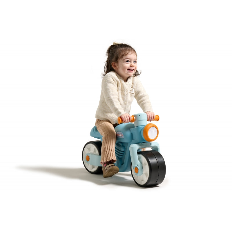 Nauja versija žavingo Falk balansinio motociklo. Įrengtas dideliais ratais, kurie užtikrina reikiamą stabilumą jūsų vaikui, ir elastomerine danga, kuri padaro jį atsparesnį įbrėžimams ir kitokiems pažeidimams. Idealiai tinka naudoti patalpose ir lauke. Su šiuo balansiniu motociklu Jūsų vaikas pradės naują kelione naująja transporto priemonė.