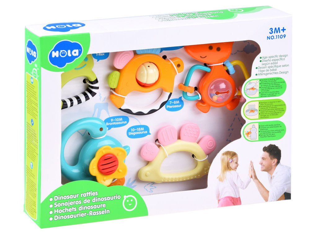 Barškučių ir kramtukų rinkinys kūdikiui 5 vnt. Dinozaurai, Hola