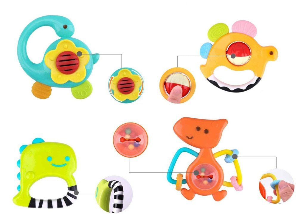 Rinkinyje yra 5 skirtingi barškučiai, supakuoti spalvingoje, gražioje, originalioje pakuotėje.