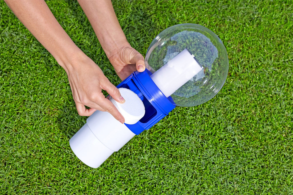 Būtinas jūsų sodo baseino įrangos elementas yra plūdė, kuri leidžia baseino chemiją. Jo užduotis - išvalyti rezervuare esantį vandenį, kad galėtumėte saugiai mėgautis baseino švara. Į jį įdėjus bromo arba chloro tabletę, skirtą vandeniui valyti ir dezinfekuoti, dozatorius dreifuoja baseine, lėtai tirpindamas tabletę.