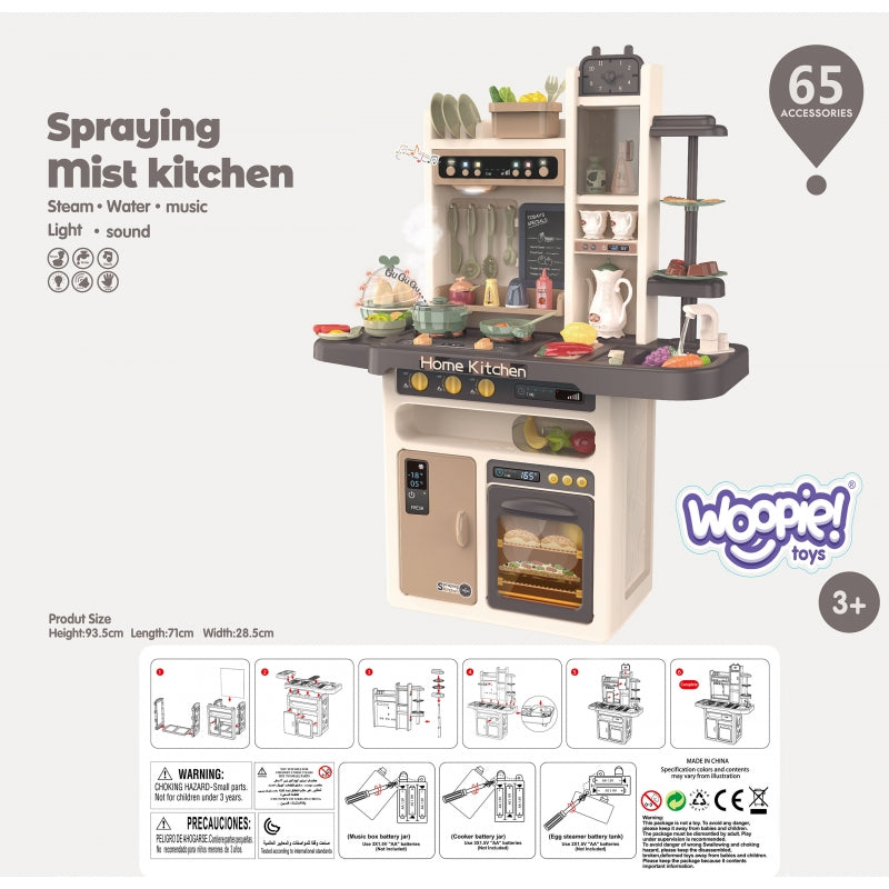 Daugiafunkcinė virtuvėlė vaikams su vandens cirkuliacija ir priedais 65 el., WOOPIE