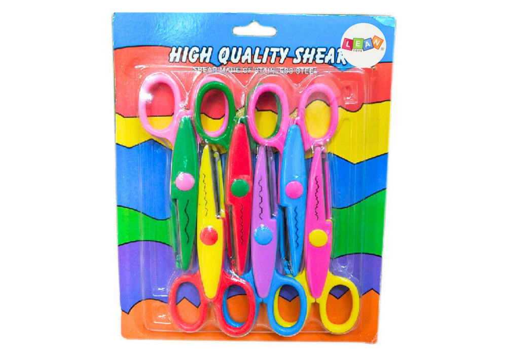 Šešių porų spalvotų žirklių, kurių kiekvienas turi unikalų raštą, rinkinys, idealiai tinkantis smagiems ir meniniams projektams. Žirklės sukurtos atsižvelgiant į vaikų saugumą, todėl idealiai tinka mokymuisi ir žaidimams. Dėl įvairių dizainų vaikai gali lavinti vaizduotę kurdami įdomias formas ir raštus ant popieriaus, kartono ir kitų meninių medžiagų.