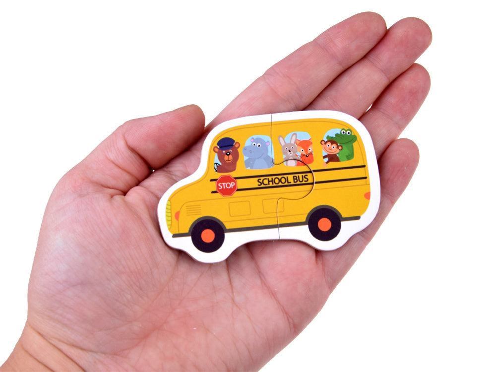 Fantastiškas, spalvingas dėlionių rinkinys su transporto priemonėmis vaikams. Didelė dėlionė, susidedanti iš dviejų dalių, leis sudėlioti tam tikros transporto priemonės paveikslėlį. Be to, kad žaidimas būtų patrauklesnis, dėlionės apačioje yra užrašas anglų ir kinų kalbomis. Dėlionių dėliojimas lavina regimąją atmintį ir erdvinę vaizduotę, moko kantrybės ir loginio mąstymo, leidžia lavinti smulkiąją motoriką.