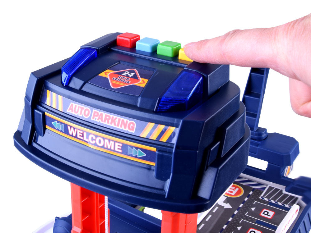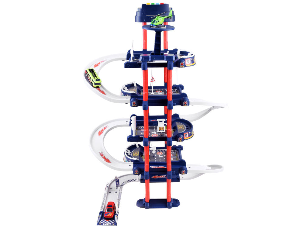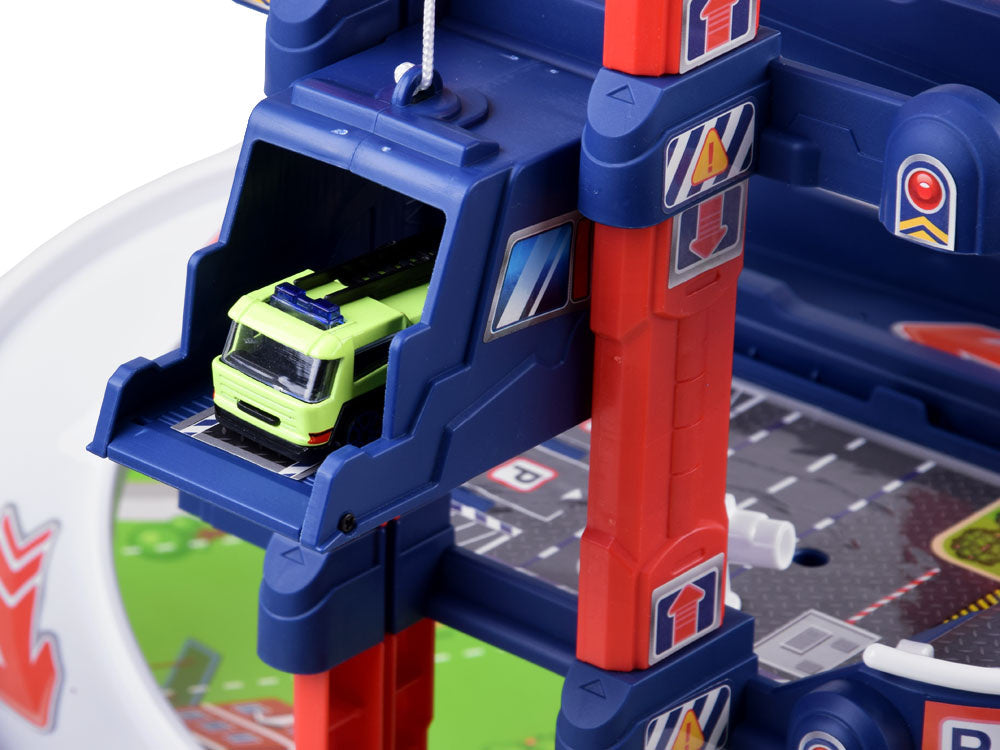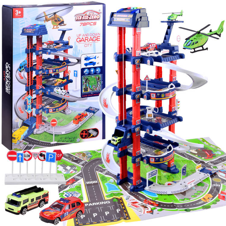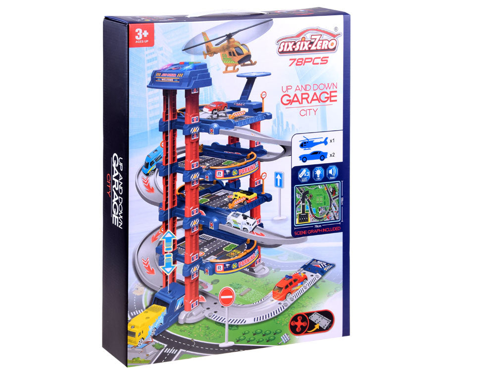 Didelė automobilių stovėjimo aikštelė su takeliais automobiliams, sraigtasparnių nusileidimo aikštele ir elektriniu keltuvu leis kiekvienam vaikui puikiai praleisti laiką. Daugiaaukštėje garažo aikštelėje yra specialios automobilių stovėjimo vietos, degalinė, automobilių keltuvas ir sraigtasparnių nusileidimo aikštelė. Automobilių stovėjimo aikštelės viršuje yra lifto stotis. Žaidimas su tikru veikiančiu liftu suteiks daug idėjų, kaip smagiai praleisti laiką kartu.