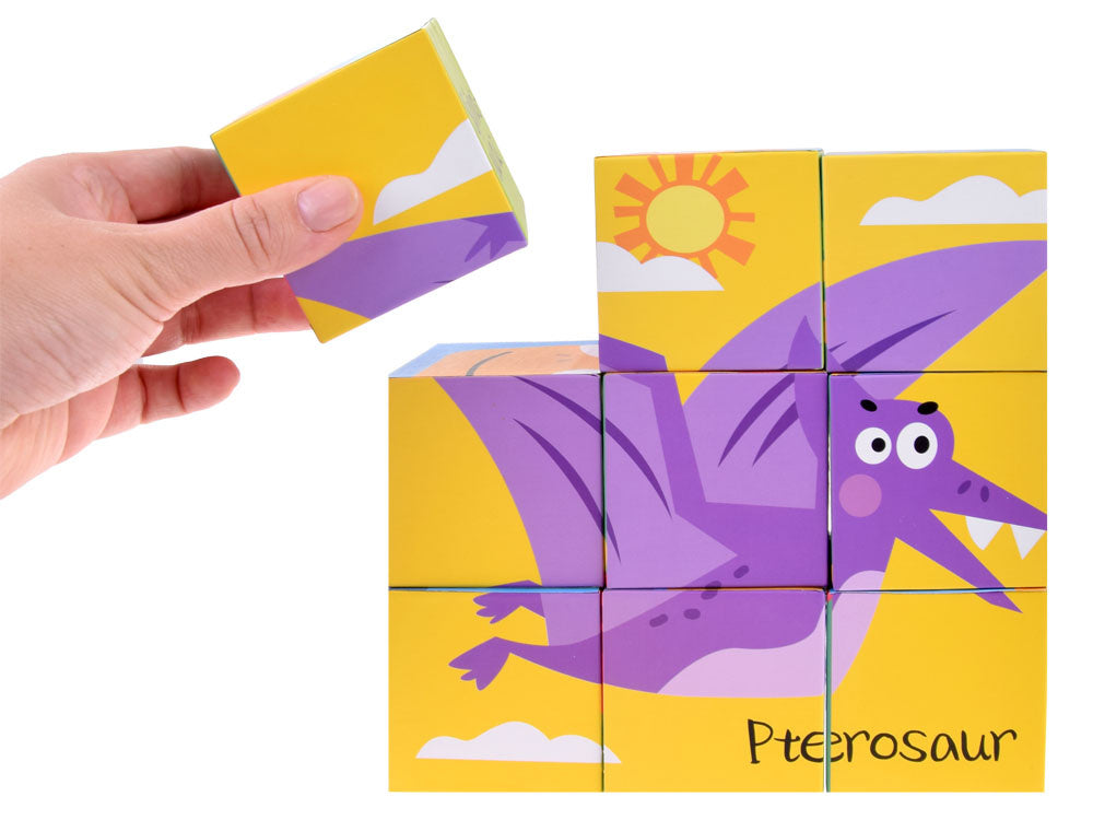 Fantastiškas dinozaurų kaladėlių rinkinys - tai pasiūlymas kiekvienam šių priešistorinių būtybių entuziastui. Rinkinį sudaro 9 dideli blokeliai su puikia grafika, iš kurių galima sudėlioti 6 dinozaurų paveikslėlius. Blokeliai pagaminti labai kruopščiai, jie turi puikią grafiką.