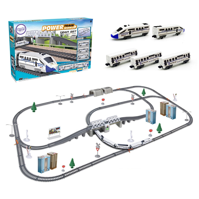 Didelė traukinių trasa 914 cm su priedais, 86 detalės, Woopie