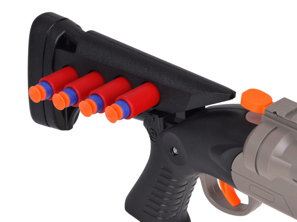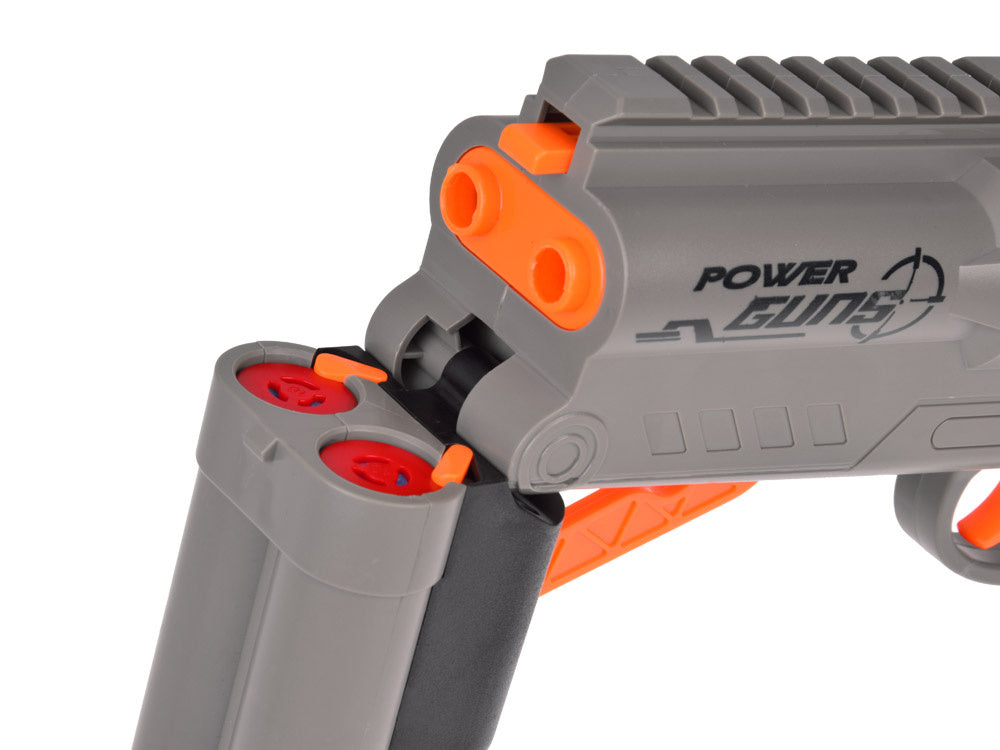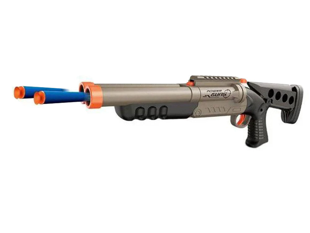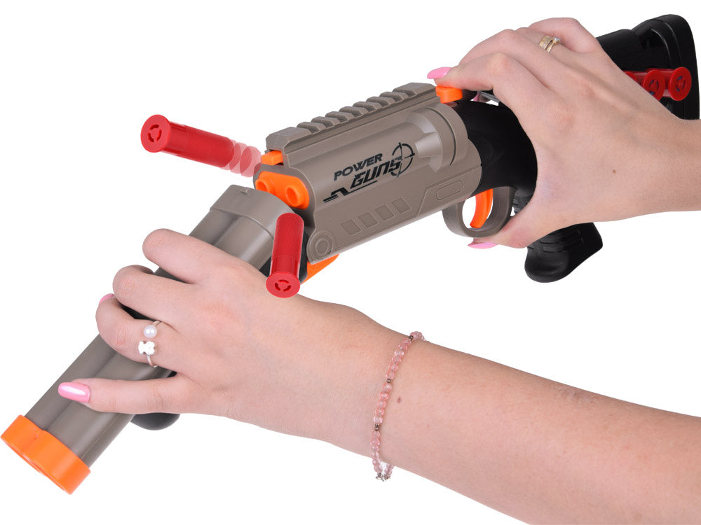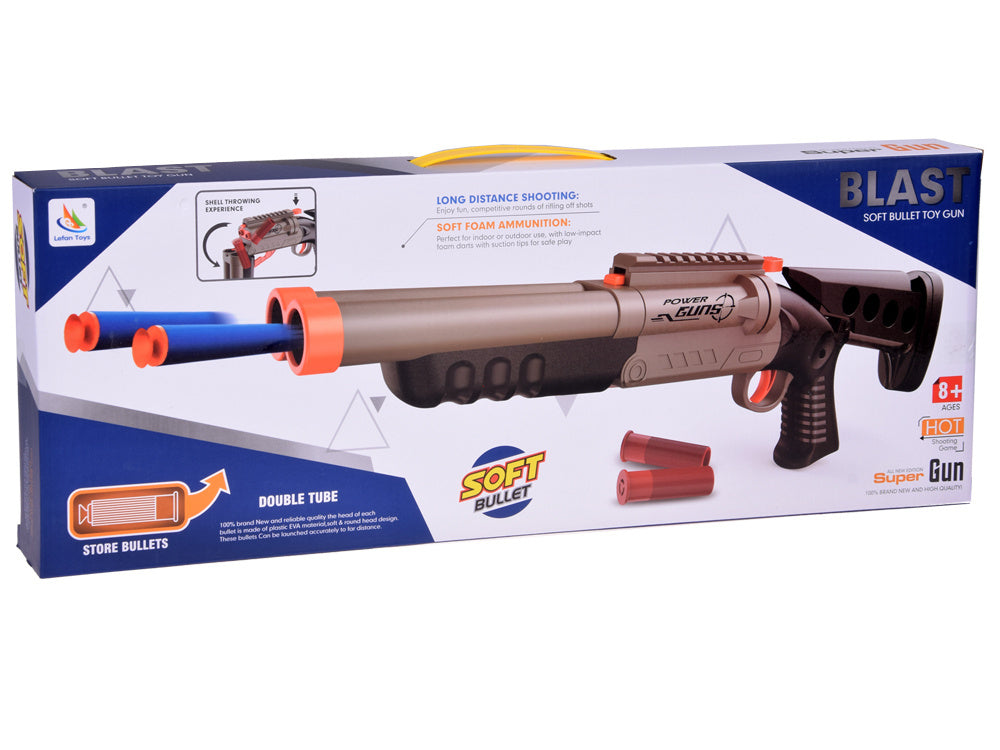 Didelio kalibro dvivamzdis šautuvas vaikams su putplasčio šoviniais, pilkas