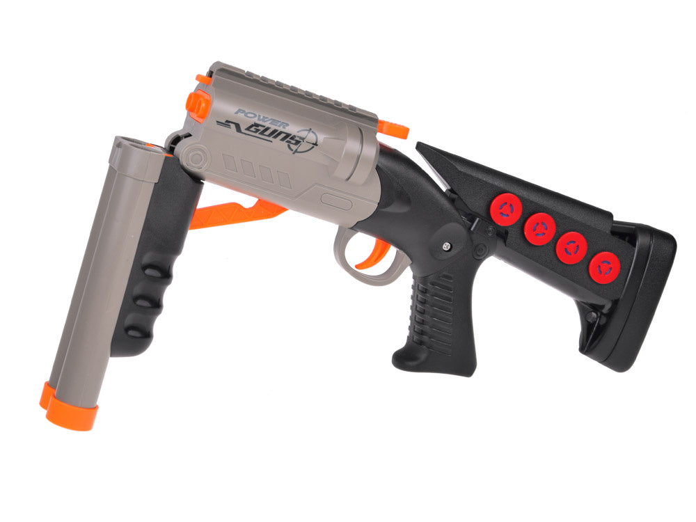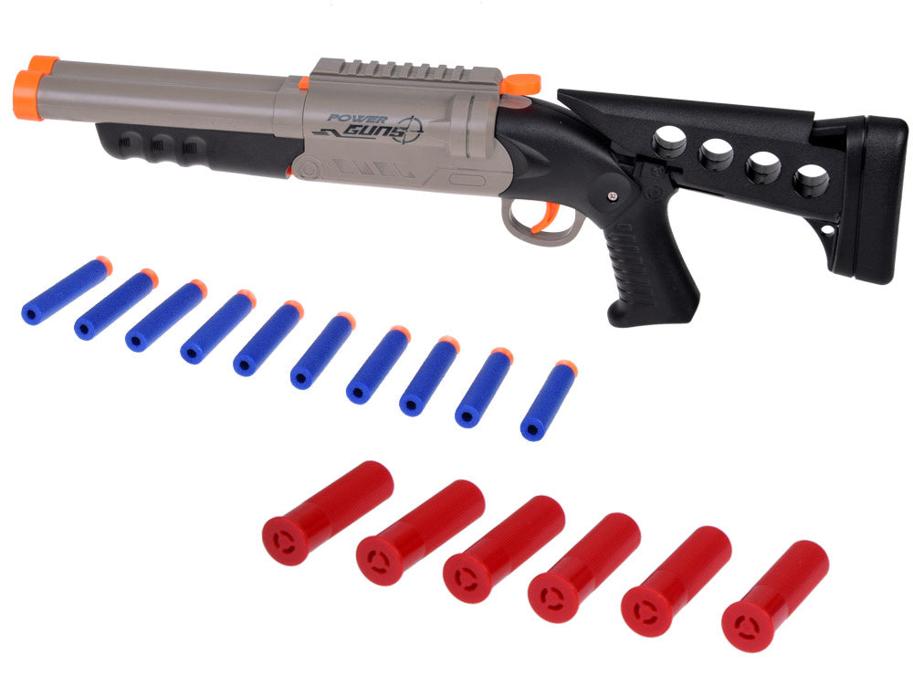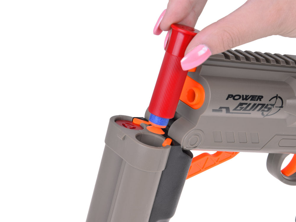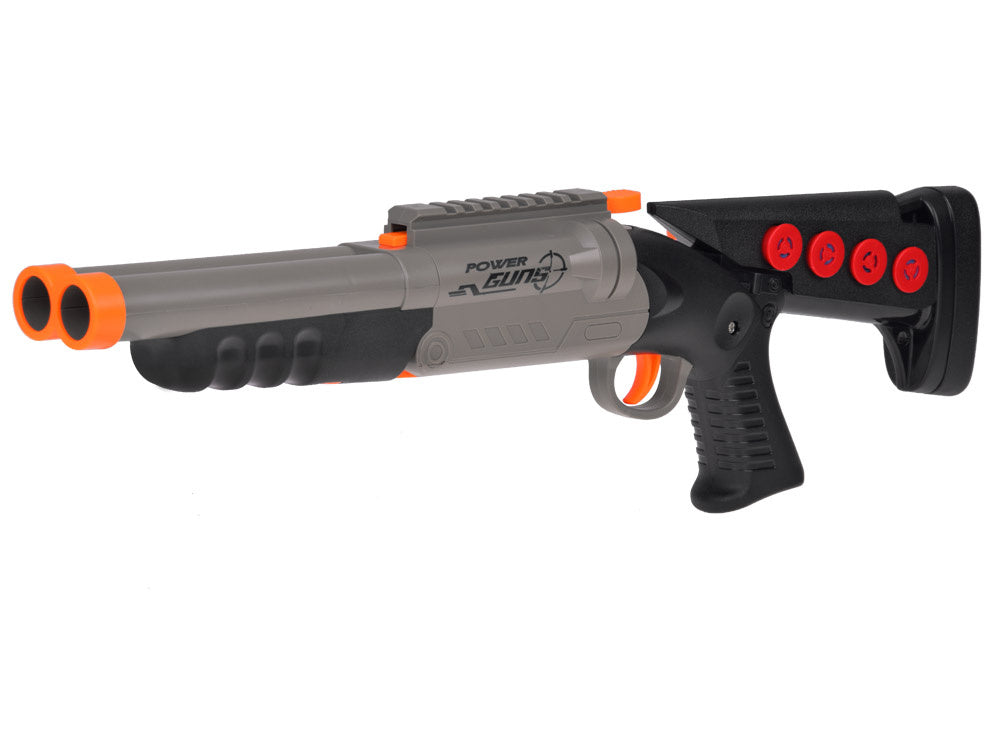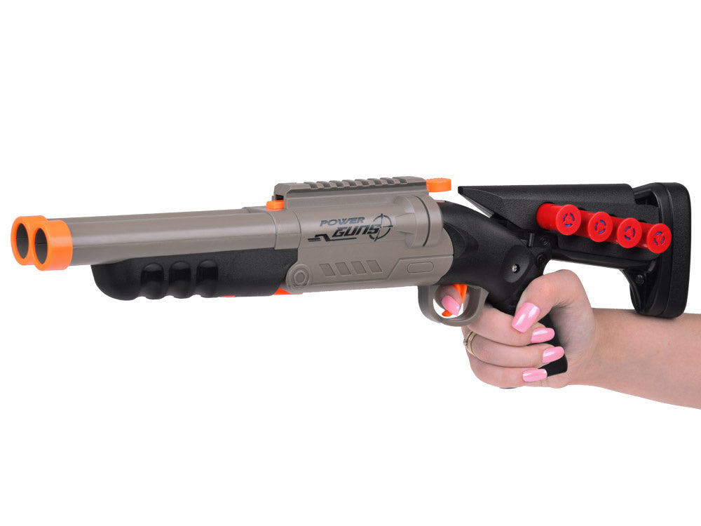 Didelio kalibro dvivamzdis šautuvas vaikams su putplasčio šoviniais, pilkas