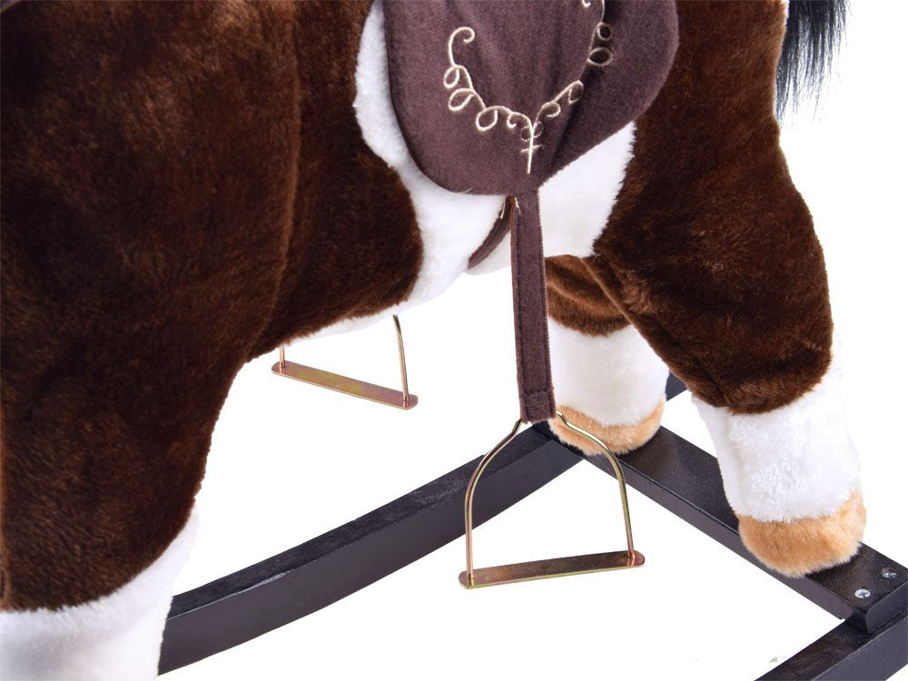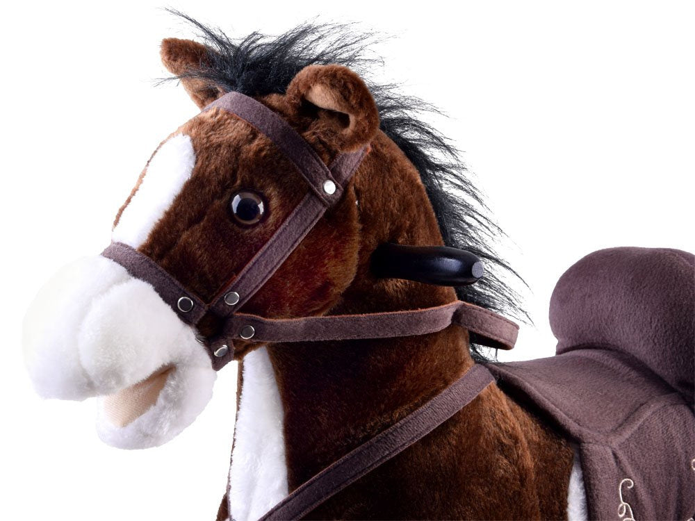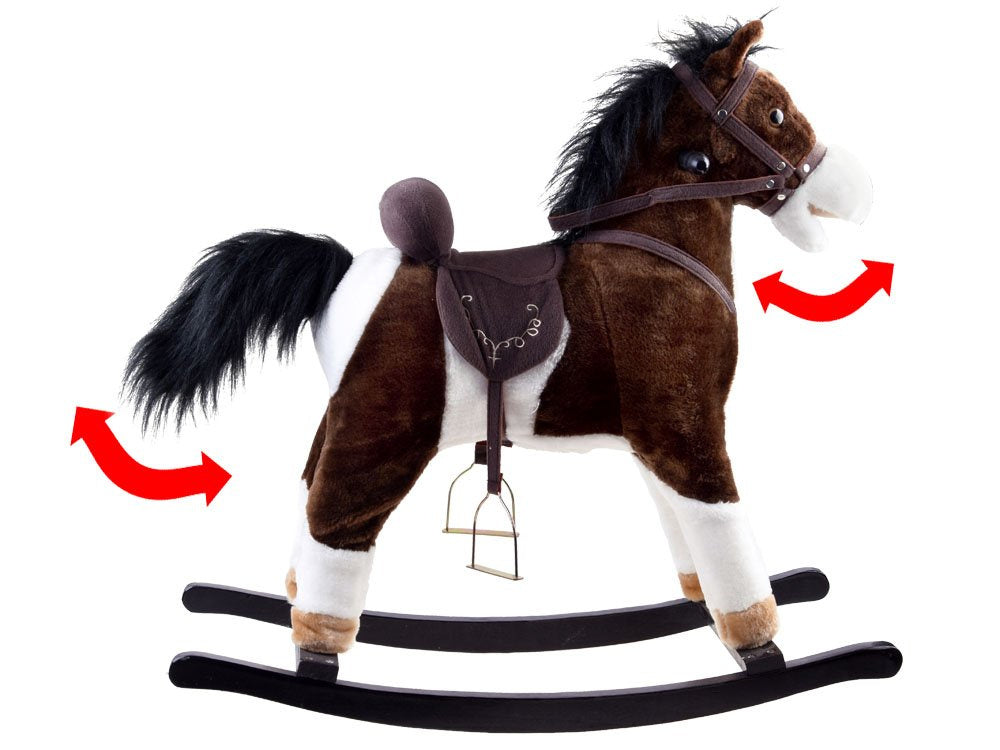 Puikus supamasis arkliukas, kuris suteiks daug džiaugsmo jūsų vaikui. Ant dešiniosios ir kairiosios arklio ausies yra mygtukai, kuriuos palietus pasigirsta žvengimo garsai, arklys pradeda vizginti uodegą, kad būtų dar smagiau!!!
