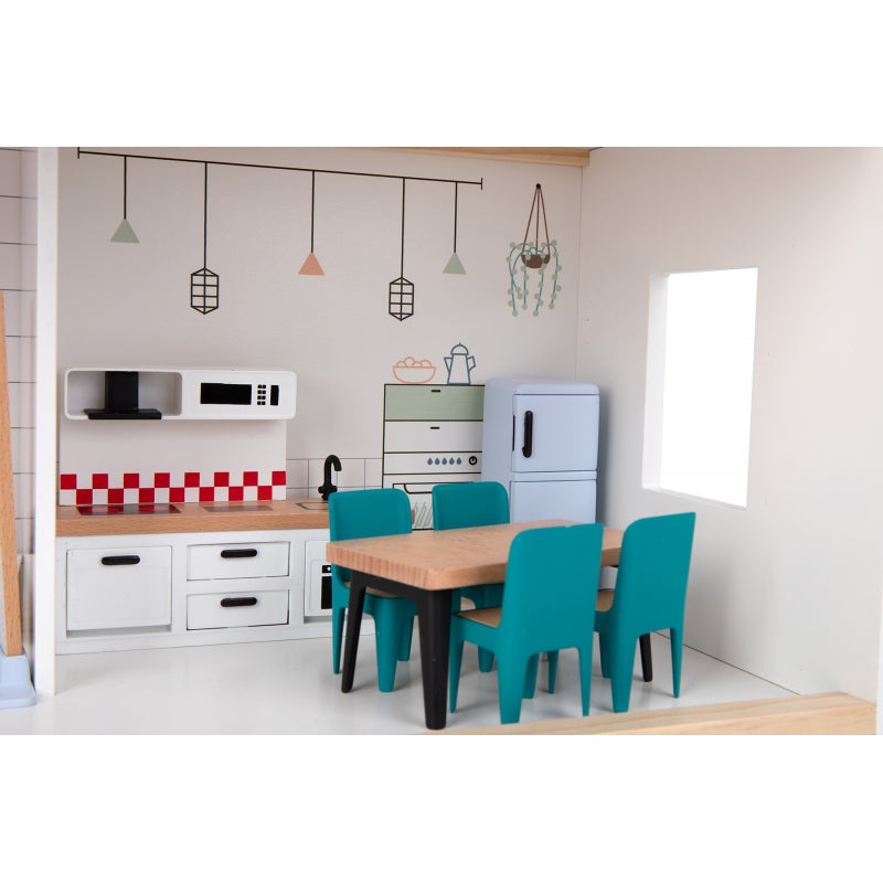 Tooky Toy lėlių namelis išsiskiria moderniu, trijų aukštų dizainu, pagamintu iš medžio. Stilingos linijos ir šiuolaikiška estetika daro jį puikiu pasirinkimu vaikams, kurie vertina modernią architektūrą. „Tooky Toy“ lėlių namelis įkvepia vaikus kūrybiškai žaisti, ugdo jų vaizduotę ir socialinius įgūdžius, tuo pačiu mokydamas juos apie šeimos gyvenimą. Tai puikus pasirinkimas bet kuriam vaikui, kuris mėgsta modernų dizainą ir kūrybinį žaidimą.