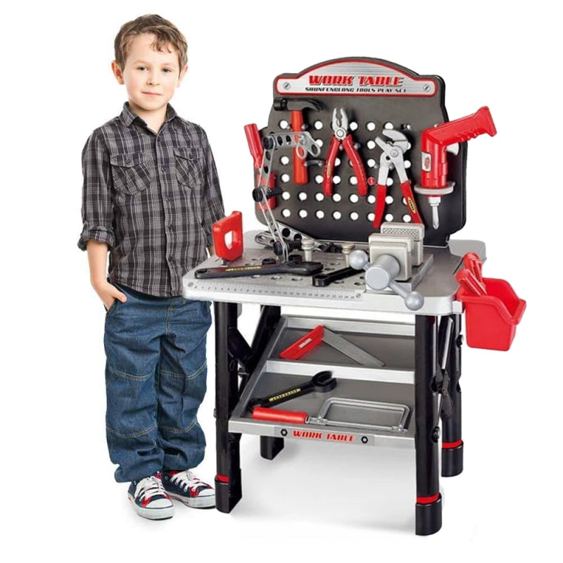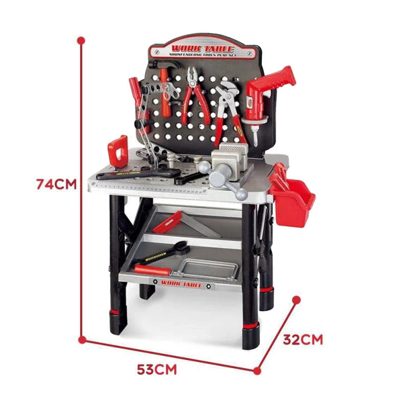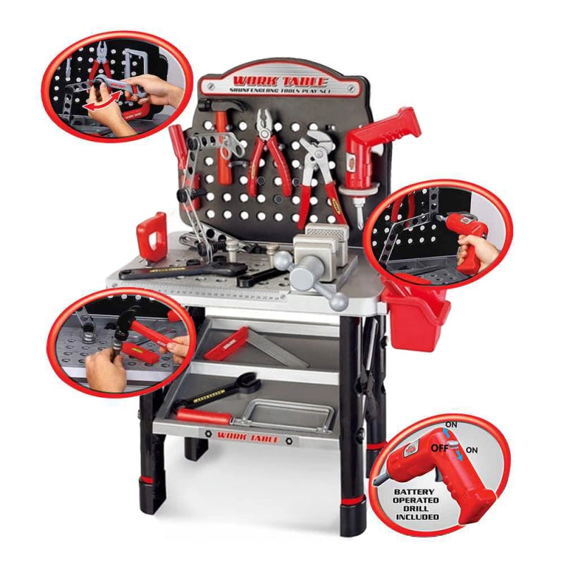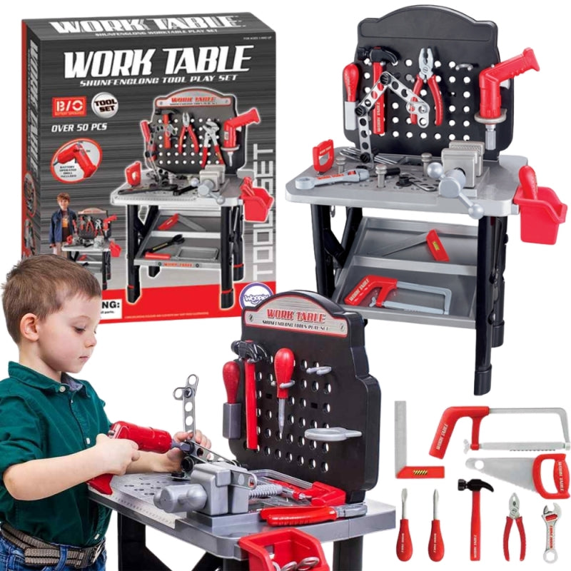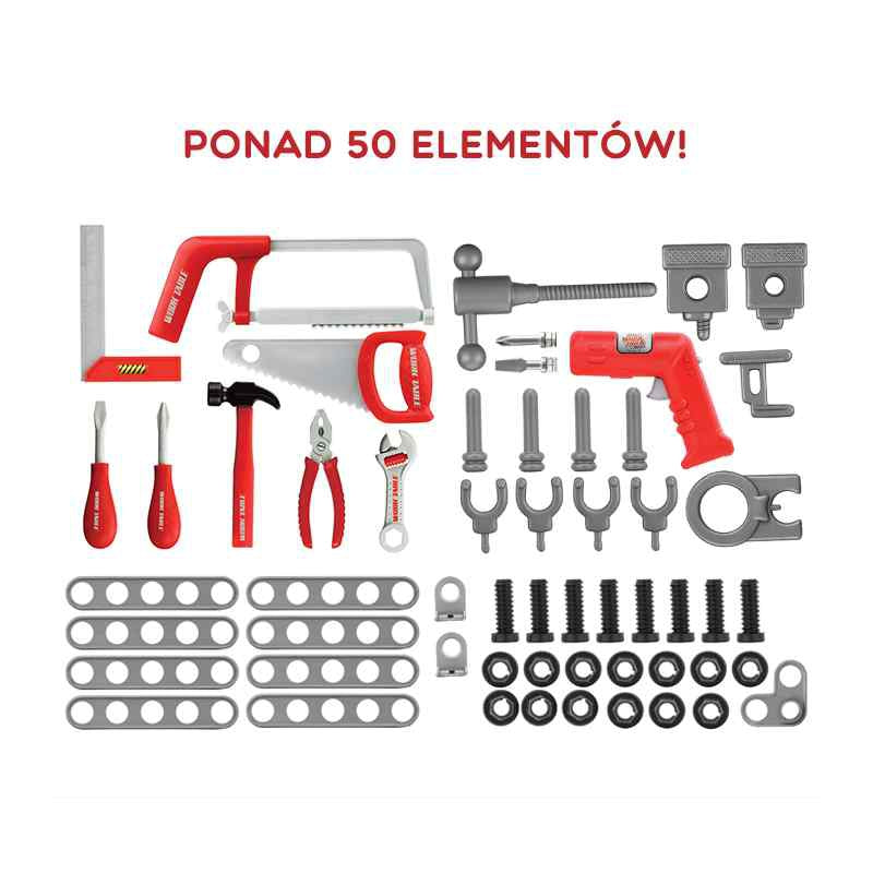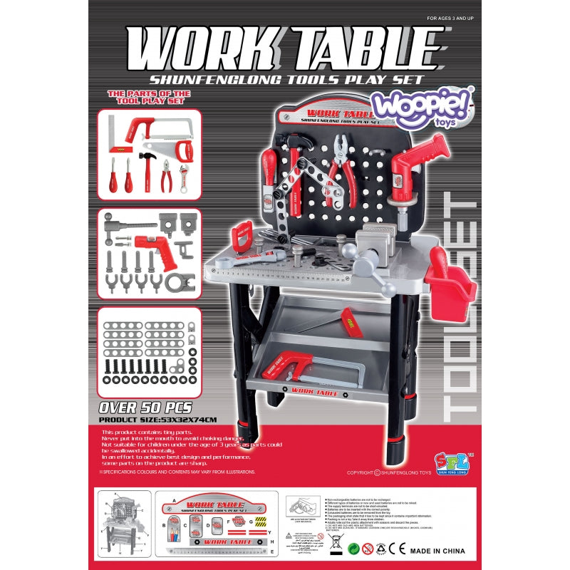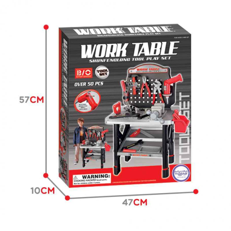 Turtingai įrengtas WOOPIE darbastalis puikiai tinka kiekvienam mažam mechanikui! Tai leidžia nuo mažens išmokti naudotis įrankiais ir jų veikimo principais. Darbastalis suteiks vaikui daug pramogų, mokydamas savarankiškumo ir tvarkos. Tvirtas darbas ir saugios medžiagos vaikui. Žaislas lavina kūrybiškumą ir skatina vaiko vaizduotę bei formuoja jo motorinius įgūdžius. Į komplektą įeina būtini įrankiai kiekvienam mažam „pasidaryk pats“ entuziastui - įskaitant gręžtuvą su akumuliatoriumi, plaktuką, pjūklą, kištuką, atsuktuvą, varžtus ir kitus elementus. Į komplektą įeina net 50 elementų!