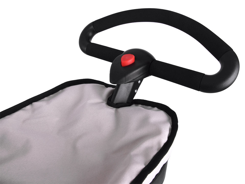 - Teleskopiškai reguliuojama nešiojimo rankena, padengta minkštomis putomis