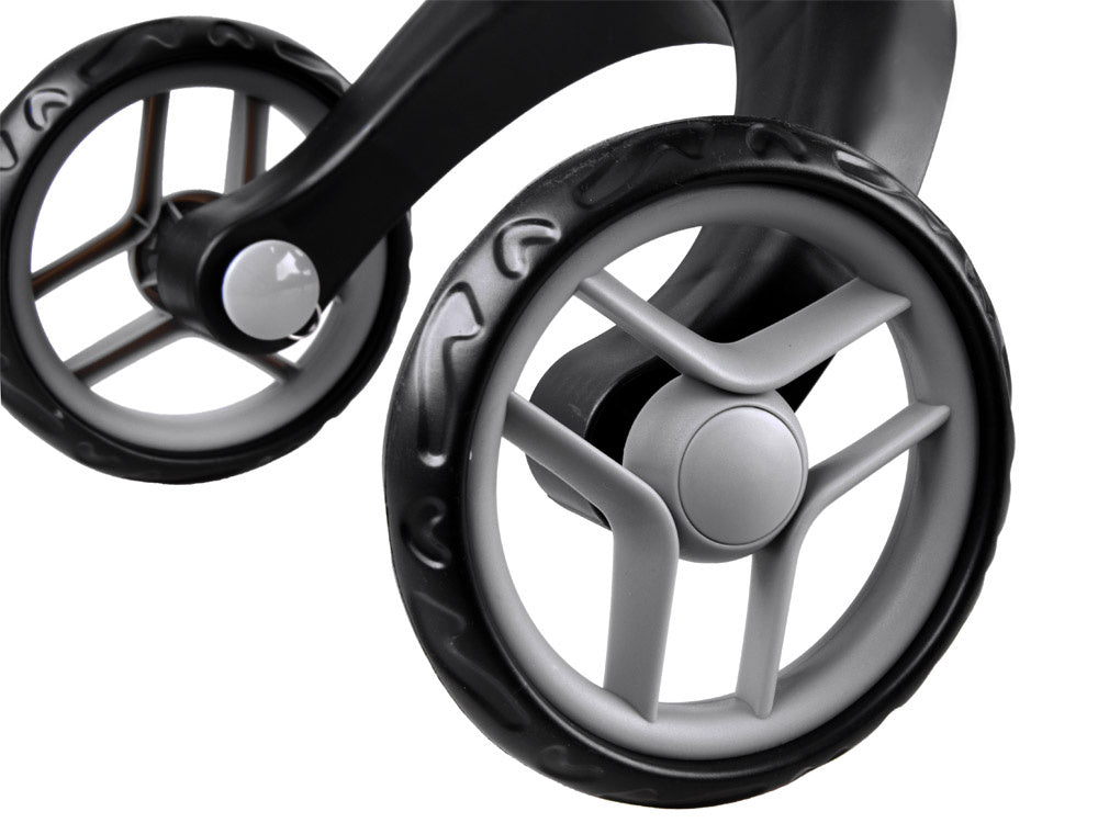 - Ratukuose panaudota porolono guma užtikrina gerą valdymą - vežimėlis yra stabilus