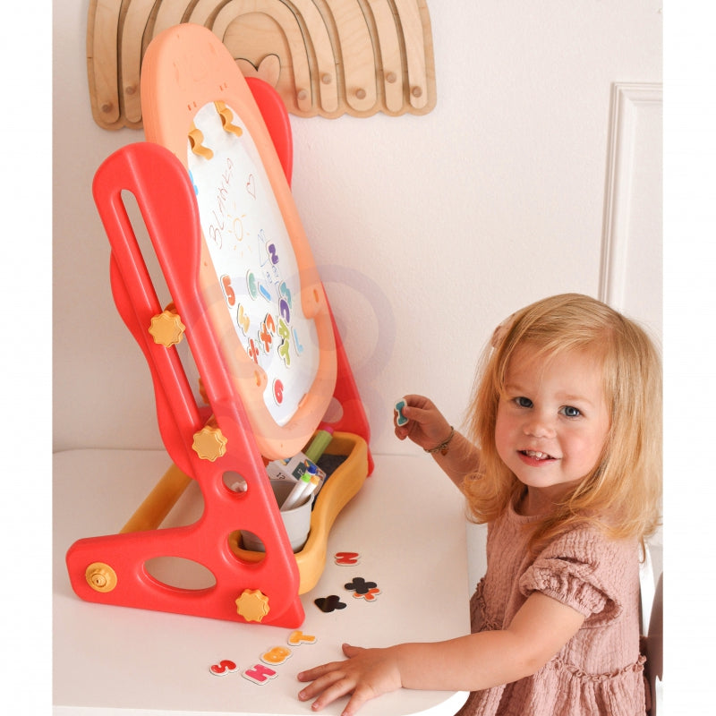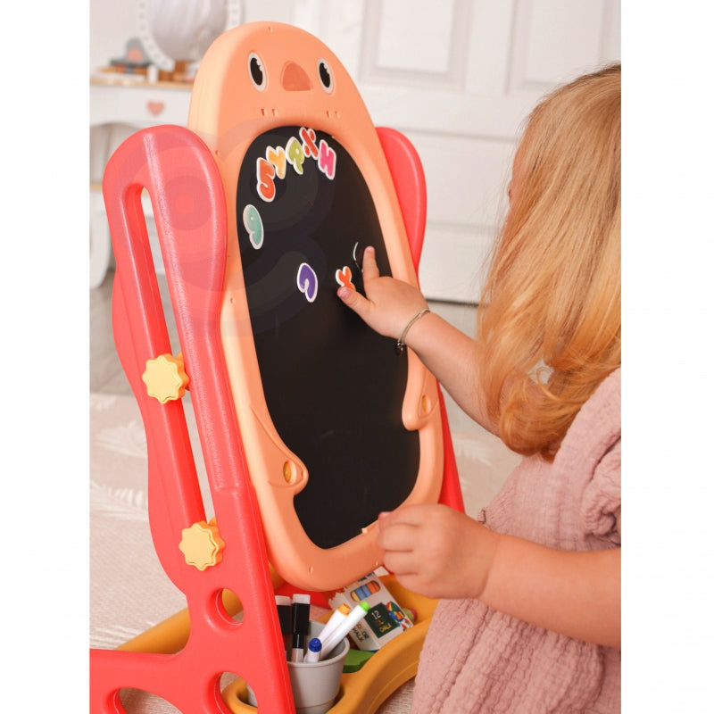 Dvipusė pastatoma magnetinė piešimo lenta "Pingvinas" 57 el., raudona, WOOPIE