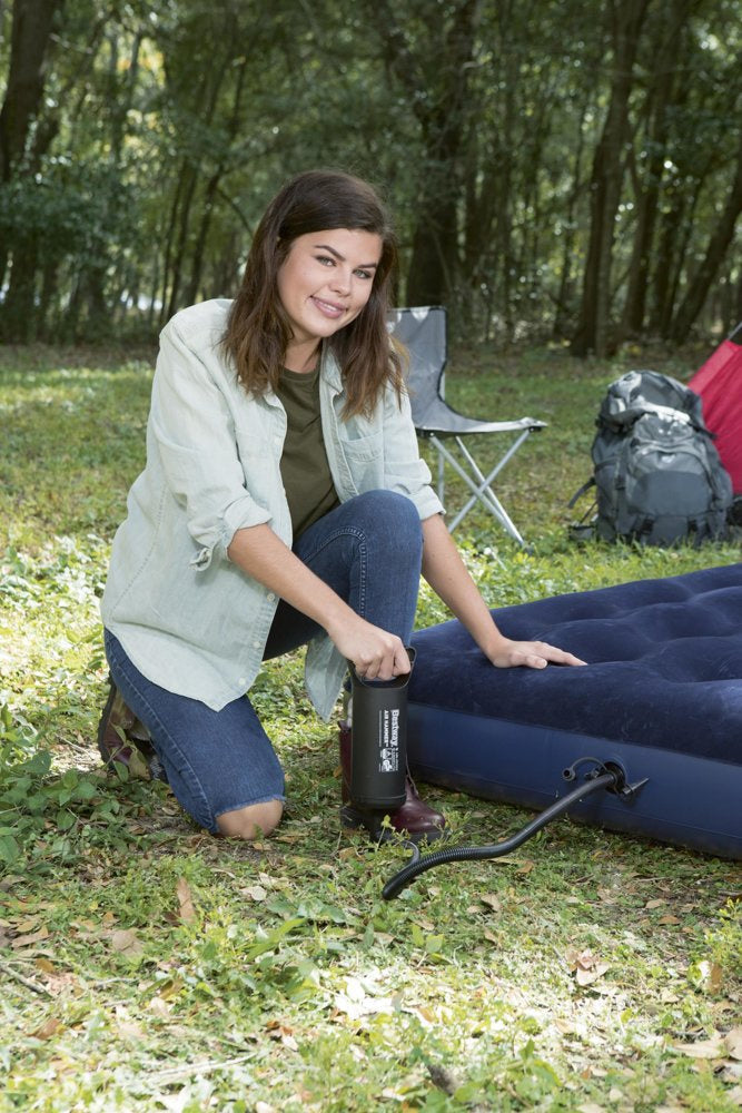 Dviejų asmenų kelioninis čiužinys skirtas naudoti tiek patalpose, tiek lauke. Jis pagamintas iš patvarios PVC medžiagos, todėl yra atsparus pažeidimams. Viršutinė jo dalis padengta minkštu veliūru. Čiužinys prisitaiko prie jūsų kūno ir puikiai tinka naudoti po palapine arba namuose kaip atsarginė lova svečiams.