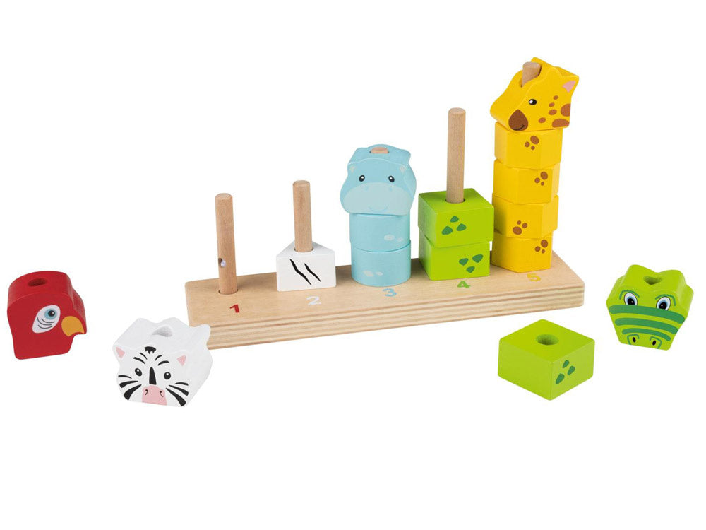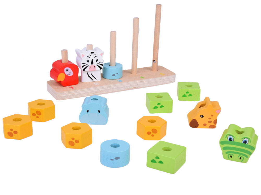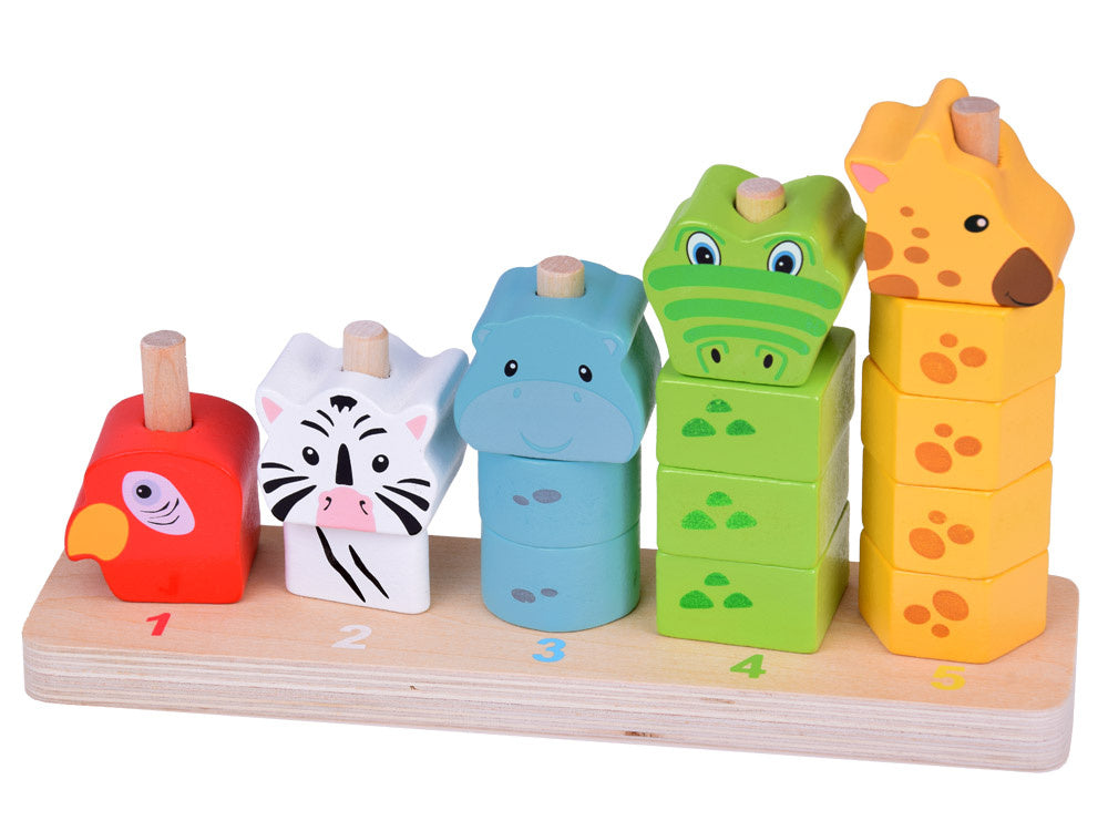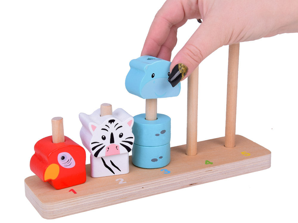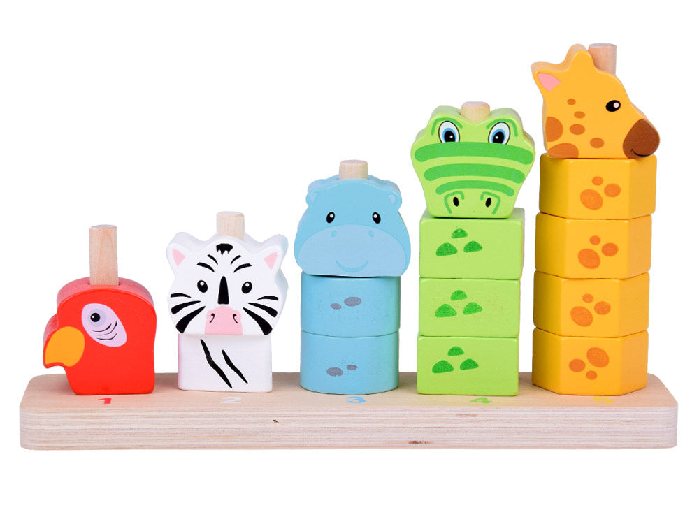 Medinės gyvūnų kaladėlės - smagus žaidimas, kuris moko spalvų, formų ir skaičiavimo! Pradėkite linksmybes su gyvūnų piramide! Spalvingos ir draugiškos kaladėlės skatins kūrybiškai dėlioti kaladėles ir kartu skatins jūsų vaiko vystymąsi.