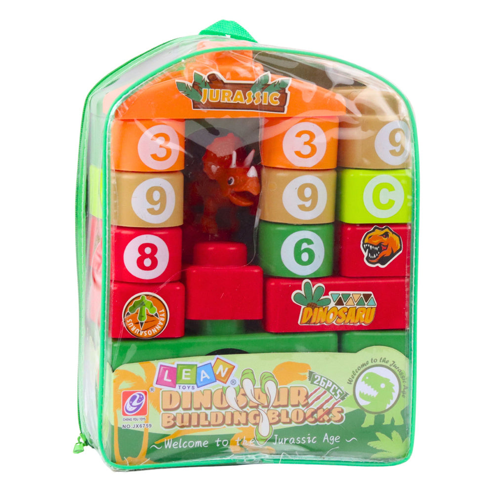 Edukaciniai statybiniai blokai kuprinėje su dinozaurais ir skaičiais 26 vnt.