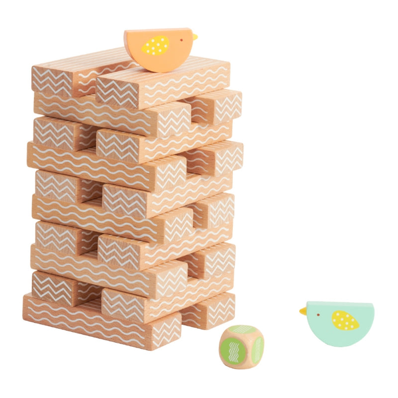 Edukacinis žaidimas „Paukščiai“ leidžia žaisti daugybę unikalių žaidimų pasitelkus vaizduotę. Žaidimo komplektą sudaro 20 kaladėlių, 2 paukščiai ir kauliukas. Viskas pagaminta iš buko medienos. Smagiai dėliokite ir pažiūrėkite, kas gali pakilti aukščiau! Žaidimas gerina bendravimo įgūdžius, ugdo vaikų drąsą ir pasitikėjimą savimi.