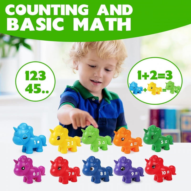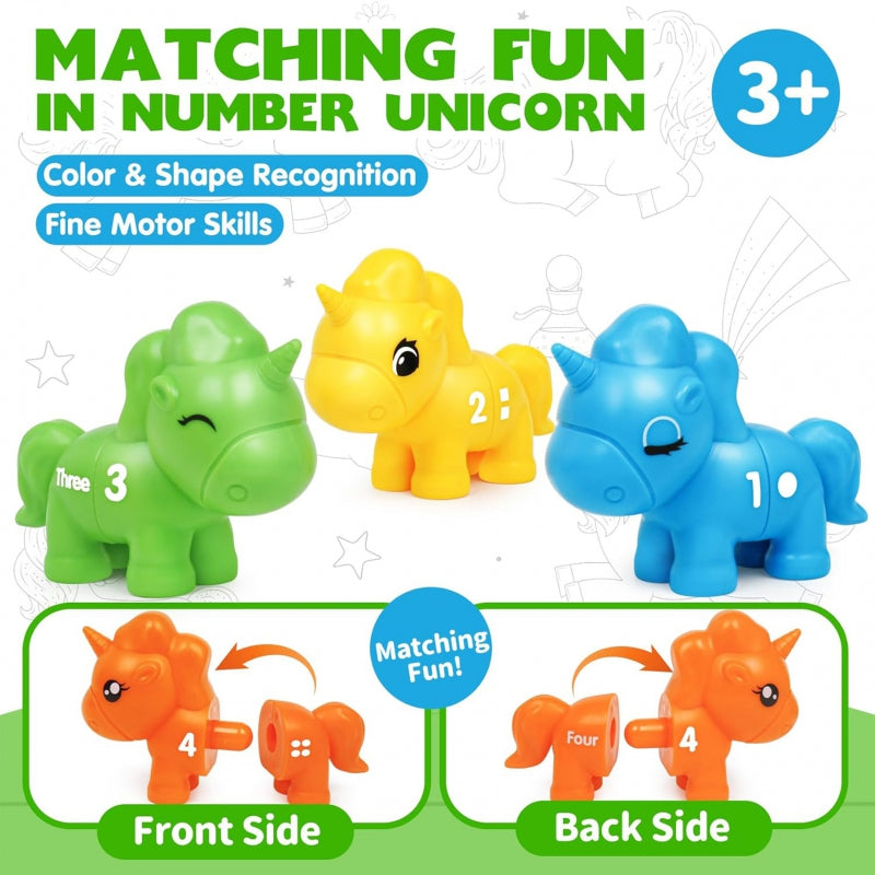 Edukacinis žaislas „Suderink skaičius“ - tai spalvingas, kūrybiškas žaidimas, kuris nukels jūsų vaiką į pasakiškų vienaragių pasaulį. Žaisdami vaikai gali sujungti skirtingas vienaragių dalis, derindami jas pagal spalvas, skaičius ar formas. Tai ne tik puiki pramoga, bet ir lavinantis žaislas, skatinantis vaiko rankų darbo įgūdžius, įžvalgumą ir loginį mąstymą.