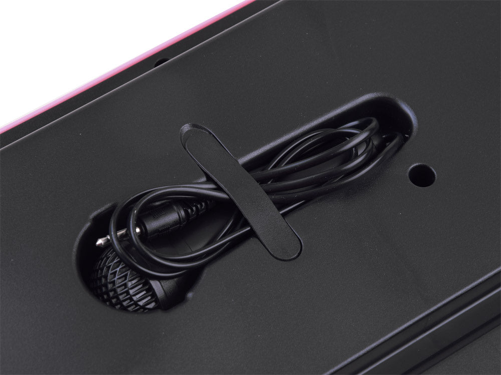Elektrinis pianinas su mikrofonu ir šviečiančiais klavišais, rožinis