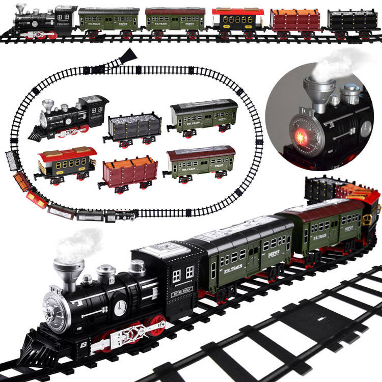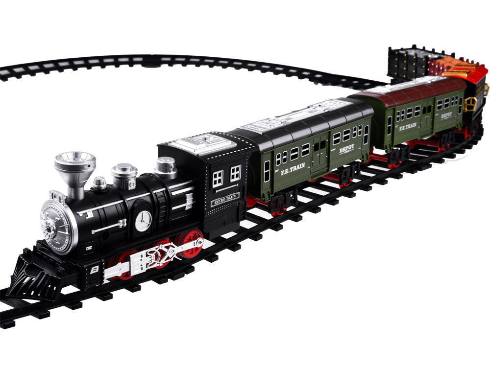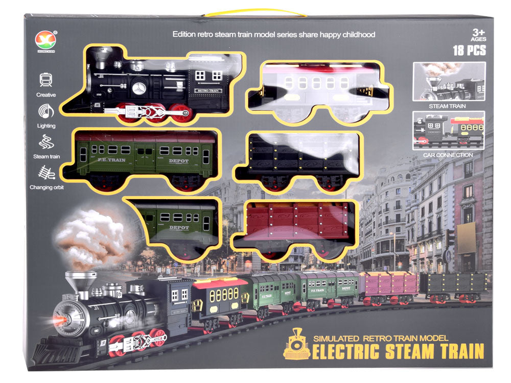 Didelis bėgių kelias su lokomotyvu ir vagonais - tai pasiūlymas visiems mažiesiems traukinių mėgėjams. Senovinis lokomotyvas, iš kurio kamino veržiasi garai, yra ypatingas šio lokomotyvo efektas. Žinoma, garai yra visiškai saugūs, o vizualinis efektas nuostabus. Tikro lokomotyvo imitacija - traukinukas sukurtas taip, kad iki smulkiausių detalių imituotų tikrą garvežį.