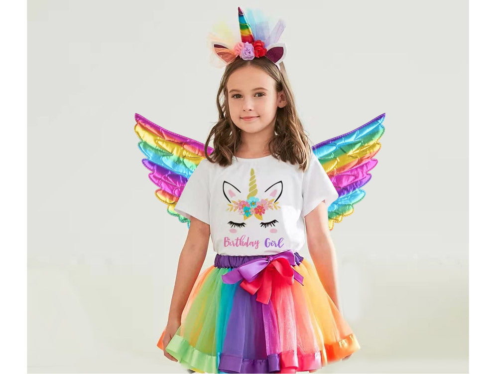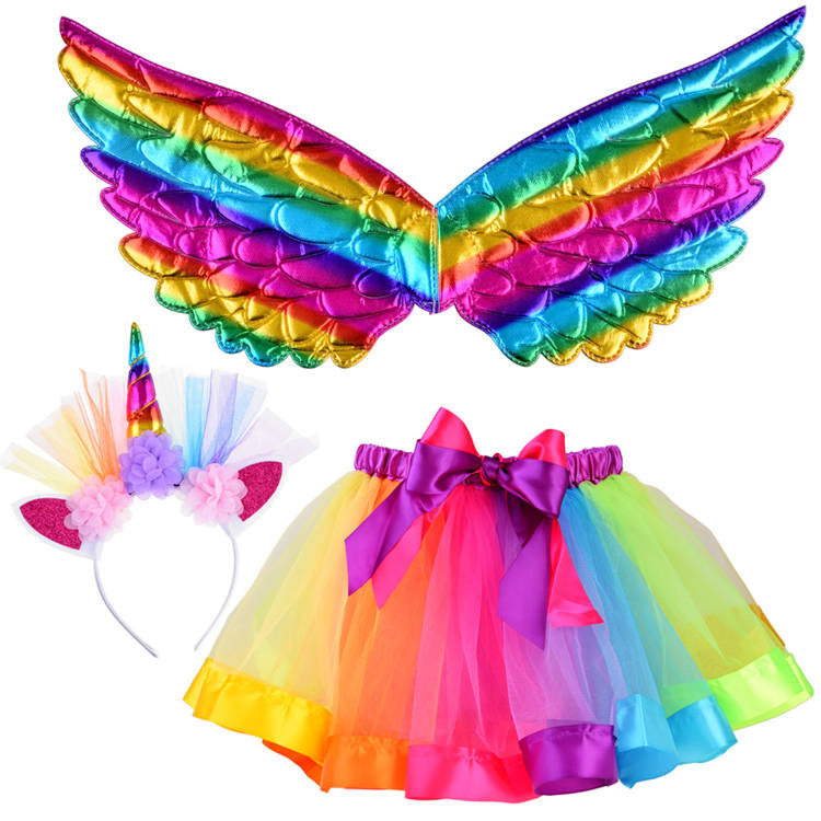 Mažosios fėjos kostiumas pradžiugins kiekvieną mažą vaiką, mėgstanti persirengti pasakų personažais. Komplektą sudaro pasakiškai spalvingas, margas sijonas, apsiūtas plačiu spalvingu kaspinu. Vaivorykštinis sijonas ant elastinės juostos priekyje turi dekoratyvinį lankelį. Kostiumas puikiai tiks kostiumų vakarėlyje, per pasirodymą darželyje, namų šventėje.