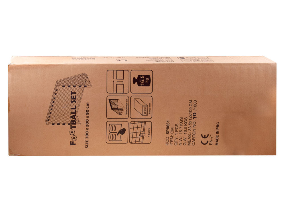 Stadiono futbolo vartai - su 300 x 205 x 90 cm dydžio metaliniu rėmu leis žaisti savo futbolo rungtynes. Tvirti vartai, milteliniu būdu dengtas 60/30 mm kubo rėmas, tinklas pagamintas iš patvaraus poliesterio.