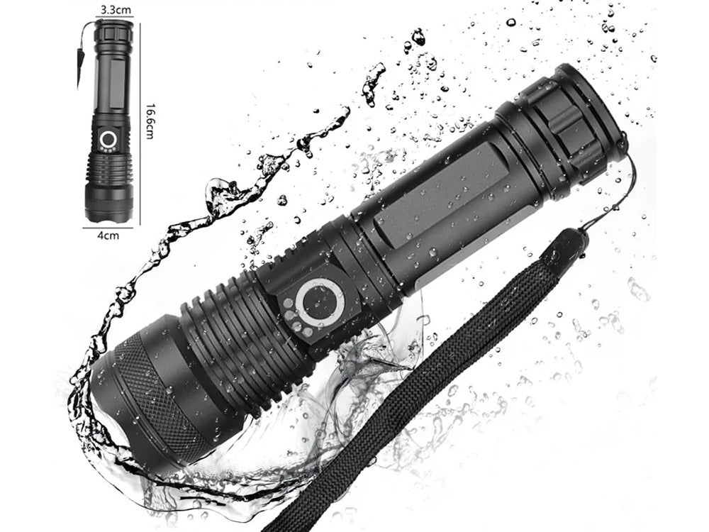 Galingas, atsparus vandeniui įkraunamas LED žibintuvėlis