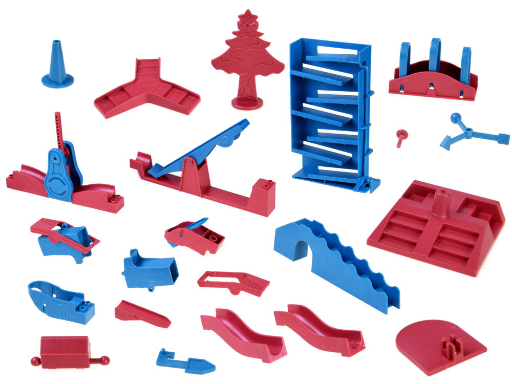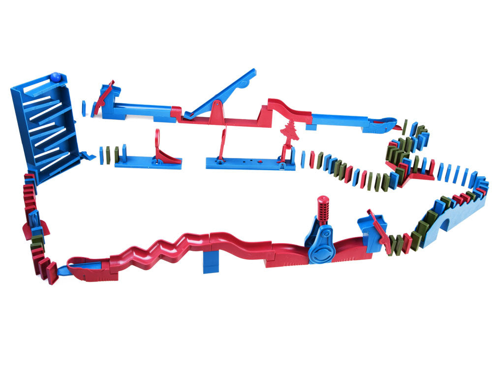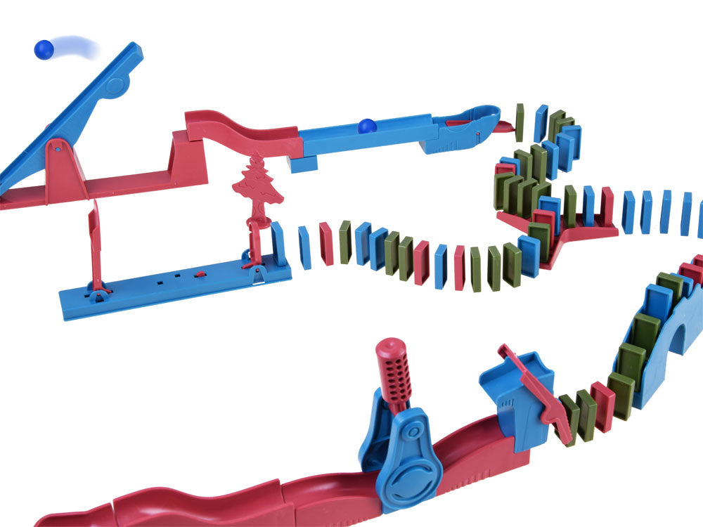 Domino kaladėlės - tai spalvingas plastikinių kaladėlių ir kliūčių rinkinys, kurį reikia sudėlioti ir pastatyti. Kad nebūtų lengva, rinkinyje yra įvairių kliūčių, kuriose išdėlioti plyteles ir sujungti maršrutus nebus lengva, užtenka vieno nekontroliuojamo judesio ir viskas apvirsta ir, deja, tenka pradėti tvarkyti iš naujo. Taigi patikrinkite, kas sugebės ištverti iki galo ir sukurti didžiausią spalvotų plytelių spiralę, ir po pastatymo, paleiskite pirmąjį kamuoliuką ir išjudinkite savo konstrukciją.