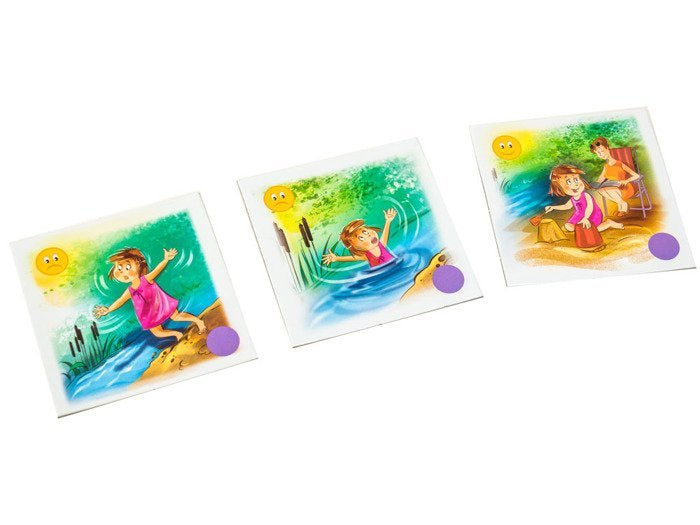 Kiekvienas vaikas gauna po vieną kvadratėlį. Visi stengiasi parinkti paveikslėlius, atitinkančius istoriją, ir sudėlioti juos teisinga tvarka: priežastis-pasekmė-teisingas elgesys. Laimi tas, kuris pirmas tai padaro.