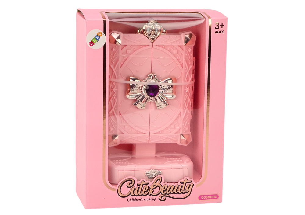 Grožio rinkinys - kiekvieno mažojo grožio mylėtojo svajonė! Atidarius žavingas dureles, atsiveria stebuklingas veidrodis. Viduje yra kosmetikos priemonių, kurios nukelia į spalvų ir spindesio pasaulį. Įvairių atspalvių blizgučiai, suteikiantys žavesio bet kokiai šypsenai, ir įvairių formų bei spalvų blizgučiai, padedantys sukurti unikalius, stebuklingus raštus ant odos.