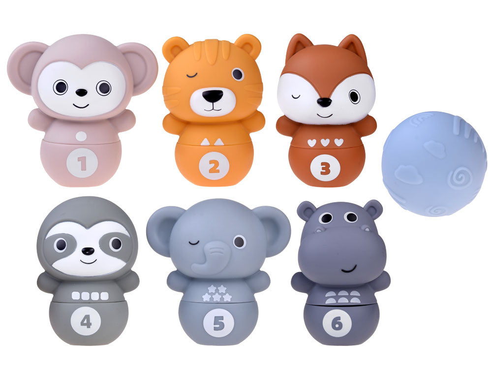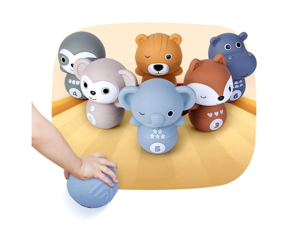 Arkadinis žaidimas – boulingas, patiks kiekvienam vaikui. Dedame kėglius vieną šalia kito trumpais intervalais. Vaikas kamuoliuku mėto į mielus gyvūnėlius, kai juos numuš, jie suskils į dalis, o tai paįvairins pramogą, nes vaikas turės sudėti gyvūnėlius atgal, derindamas formą arba ant pilvuko nupieštų figūrų skaičių.