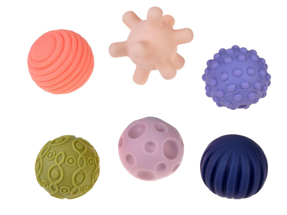 6 sensorinių kamuoliukų rinkinys puikiai tiks žaidimams, mėtymui, ridenimui, mankštai ir masažui. Pastelinių spalvų kamuoliukai turi skirtingus įdėklus, dėl kurių jie stimuliuoja lytėjimą, jie puikiai tiks žaidimui ir vaiko masažui.