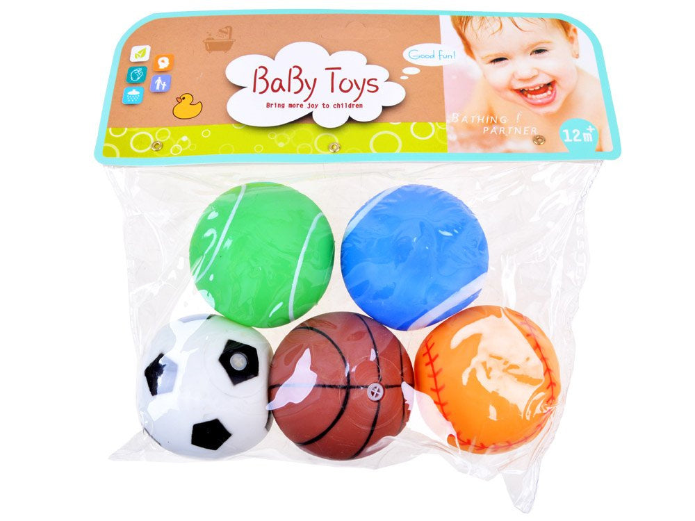 Penkių guminių kamuoliukų rinkinys su „squeaker“ patiks kiekvienam vaikui. Žaislas turi įmontuotą girgždėjimą, kad vaikui paspaudus išgirstų linksmą garsą. Žaislas veiks maudantis vonioje, smėlio dėžėje arba mokantis mesti ir gaudyti.
