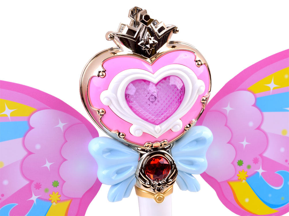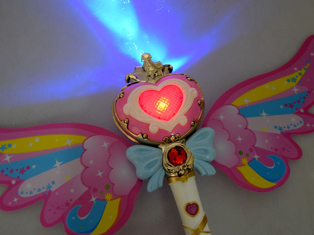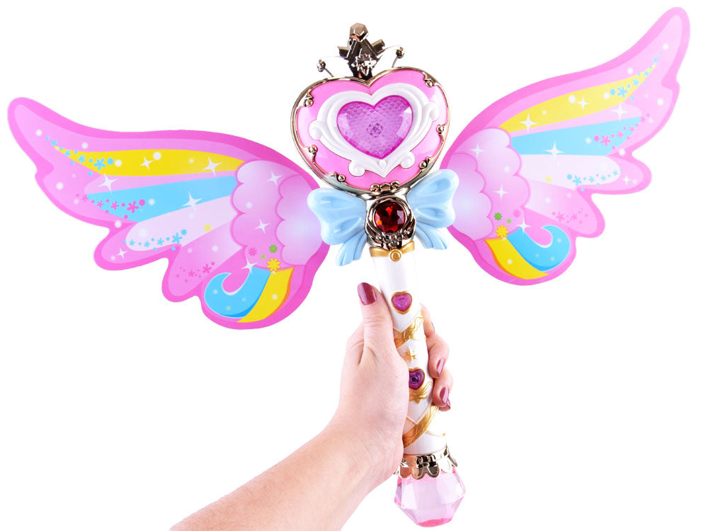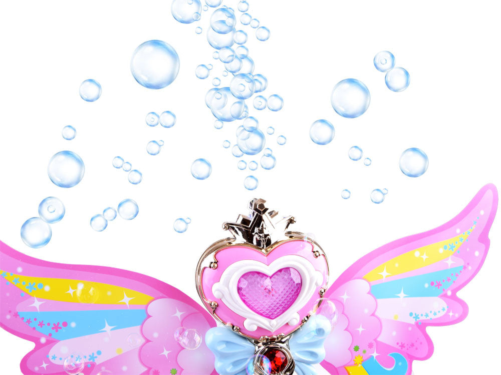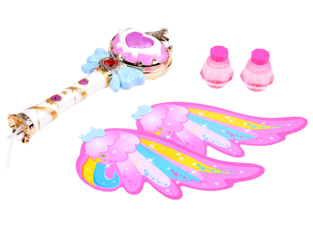 Interaktyvi magiška lazdelė, kuri leidžia muilo burbulus, yra puikus rekvizitas kiekvienam mažam magui, mėgstančiam burti, ir supažindins jį su pasakų, pasakų ir magijos pasauliu. Žavinga burtų lazdelė su vaivorykštės sparnais turi mygtuką, kuriuo paspaudus žaislas paleidžia spalvotus muilo burbulus, groja linksmą muziką ir šviečia spalvota šviesa.