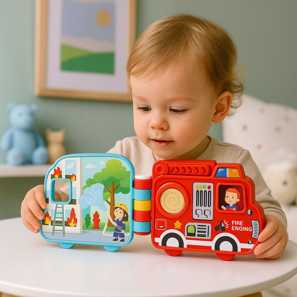 Ši interaktyvi knyga yra mokomasis žaislas mažiems vaikams, kuriame suderintos knygos, transporto priemonės ir veiklos skydelio funkcijos. Dėl spalvingų iliustracijų, garso efektų ir judančių dalių vaikai gali mokytis žaisdami, ugdydami rankų įgūdžius, smalsumą apie pasaulį ir rankų bei akių koordinaciją. Tai puikus žaislas mažiems vaikams, derinant edukacinę vertę su turtingais, įtraukiančiais žaidimais.